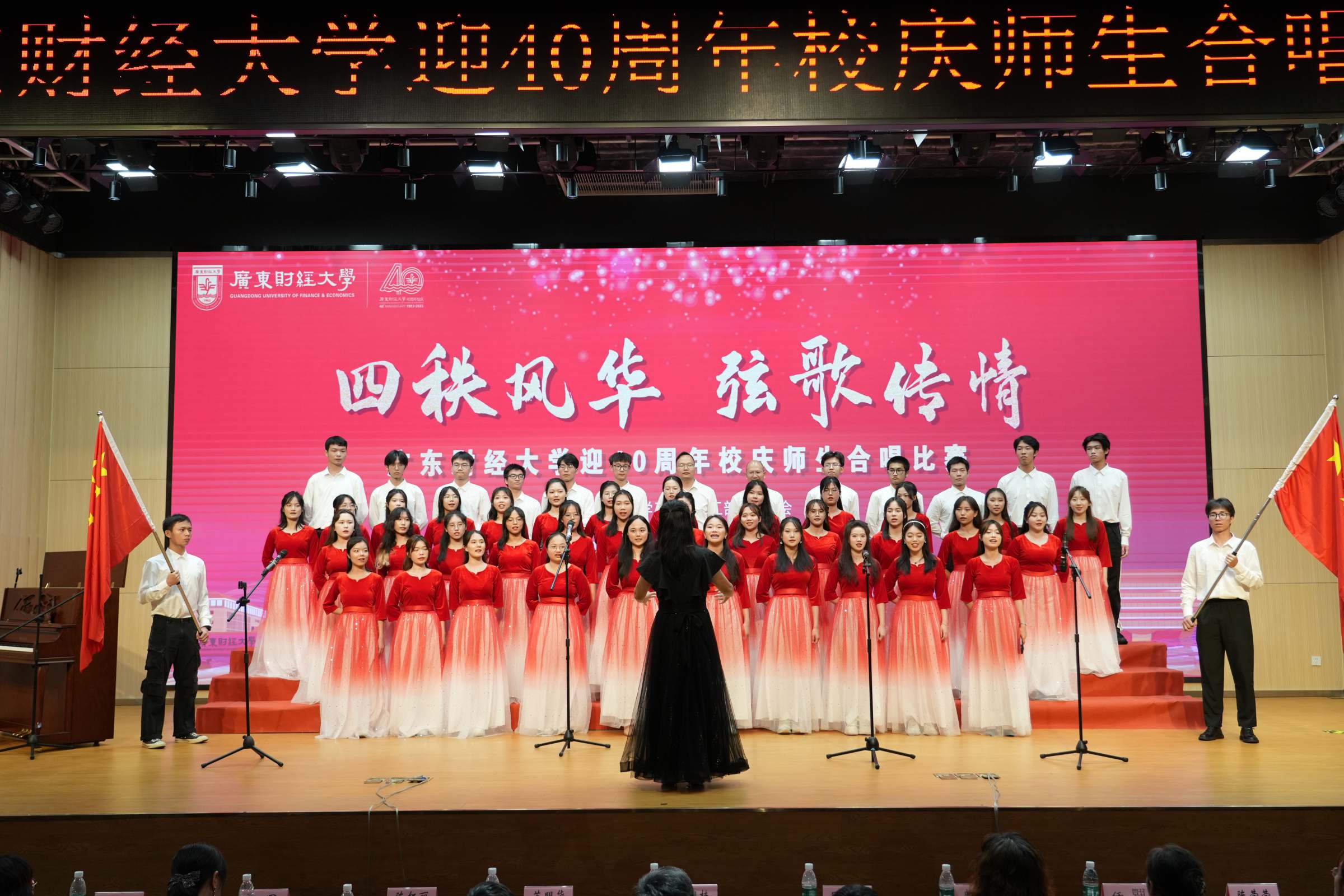 比赛现场精彩纷呈。感心动耳的歌声展现着全体广财人奋发有为、蓬勃向上的精神风貌,也激励着全校师生员工以校庆40周年为新的起点,传承奋斗精神,在建设湾区一流财经大学的新征程上砥砺前行,奋力谱写学校事业高质量发展新篇章!