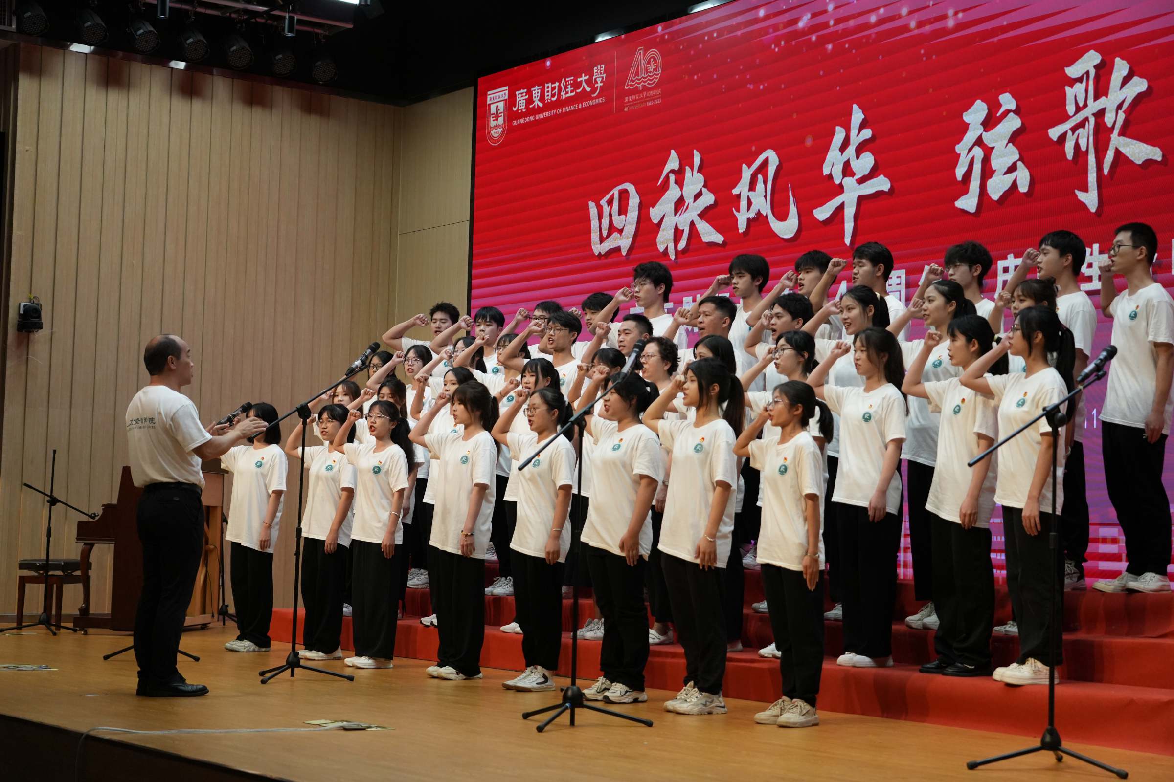 比赛最后,在《星辰大海》的歌声中,演唱者们用音乐讴歌学校40年走过的辉煌岁月,也彰显了全体广财人逐梦前行、接续奋斗的壮志豪情。