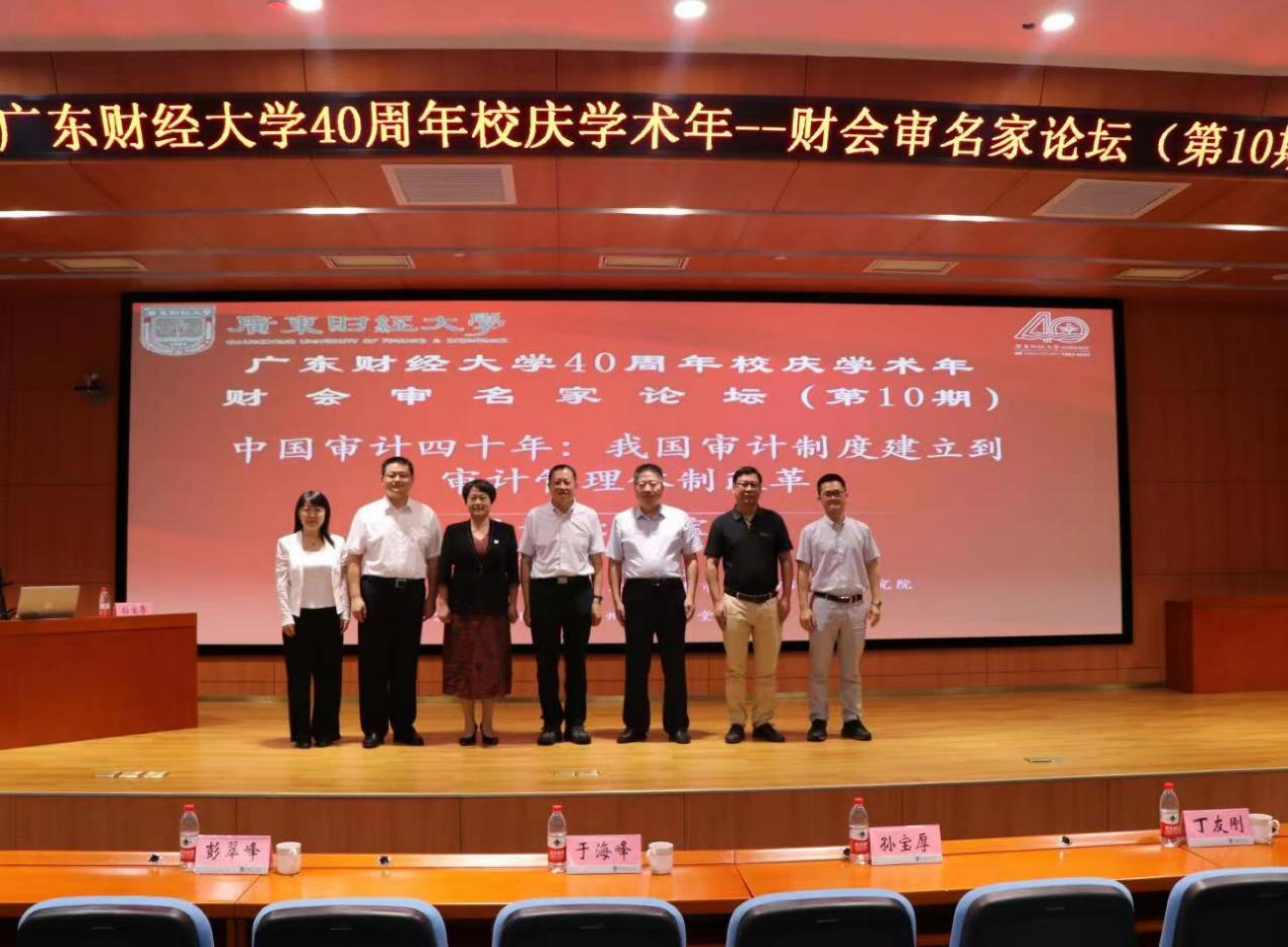 6月11日上午,“40周年校庆学术年——财会审名家论坛(第10期)”在广州校区正心堂举行。中国审计学会会长孙宝厚研究员作题为“中国审计四十年:我国审计制度建立到审计管理体制改革”的报告。校长于海峰、副校长丁友刚出席论坛,论坛由会计学院院长雷宇主持。会计学院、智能财会管理学院、审计处等单位领导和师生共180余人参加论坛。