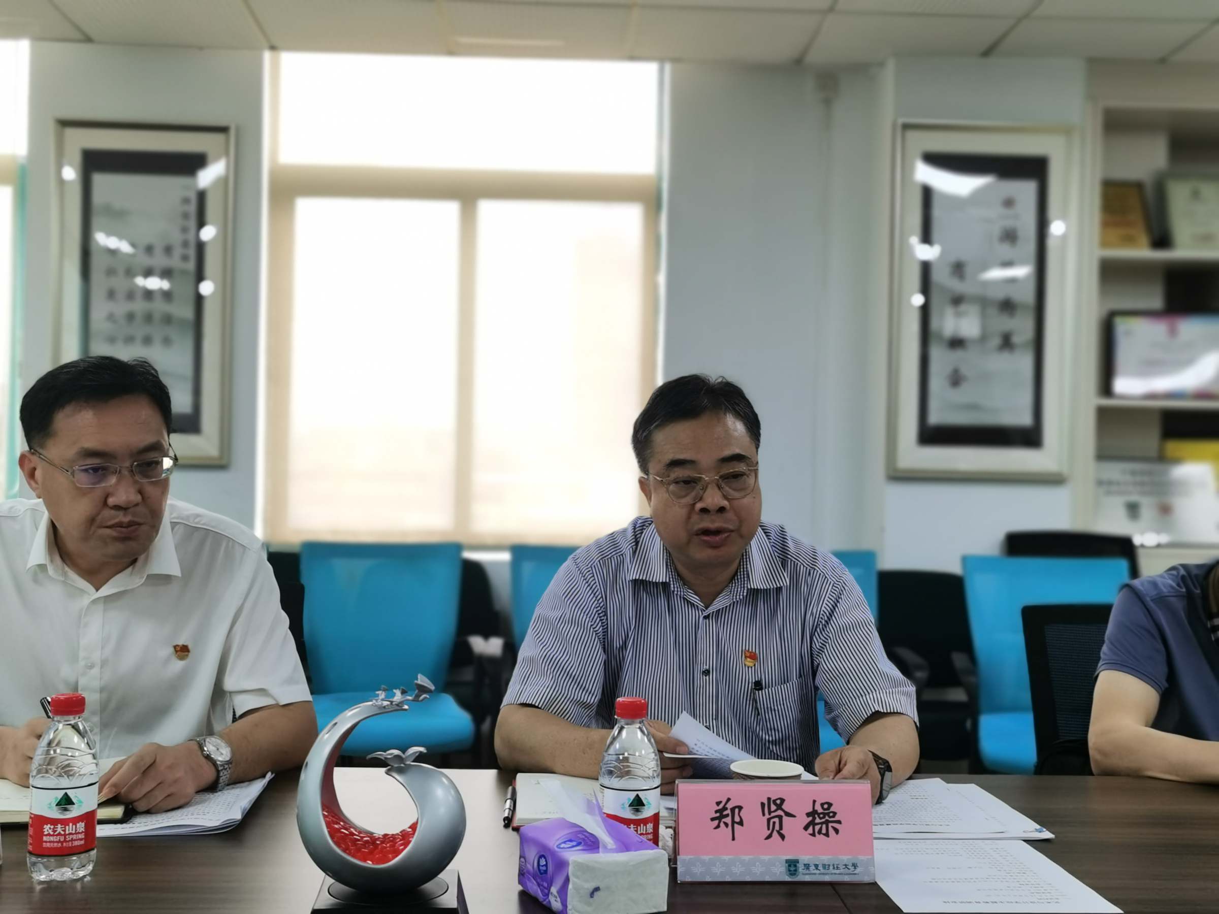 6月15日上午,校党委书记郑贤操到艺术与设计学院就学习贯彻习近平新时代中国特色社会主义思想主题教育开展调研。校党委组织部部长郑金栈、党办校办主任刘大鹏、纪检监察室主任江晓铃、宣传部副部长曾宪怀等陪同调研。