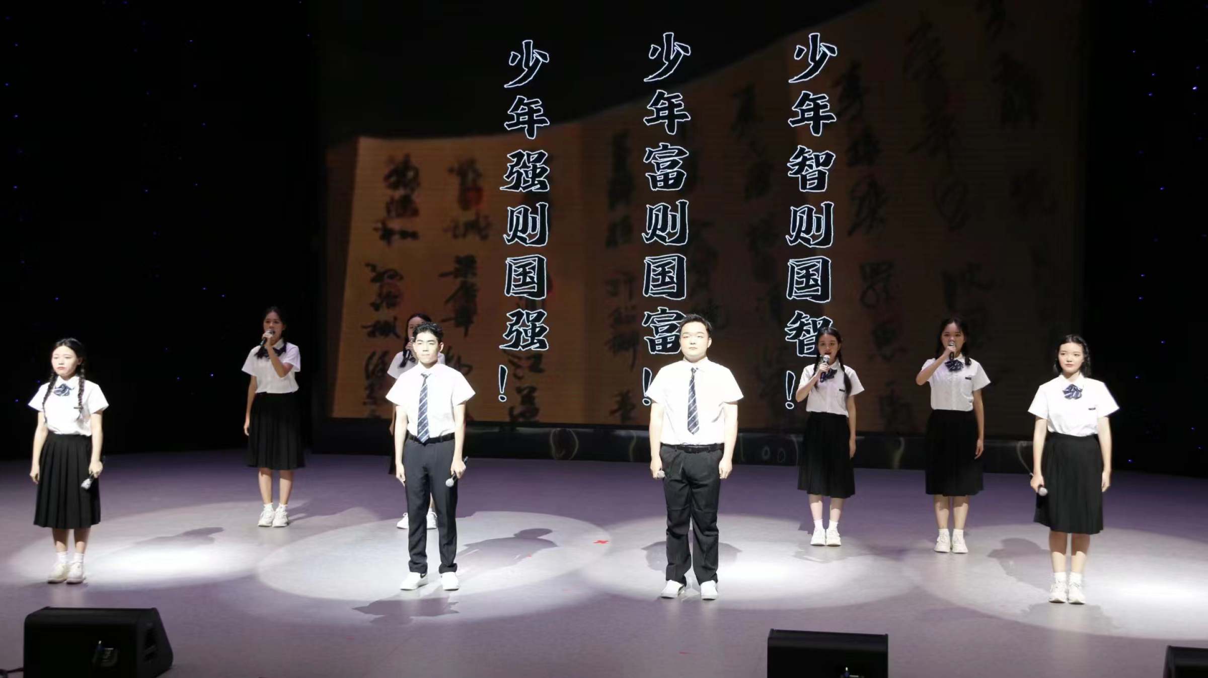 随着演员们铿锵有力的朗诵,演出徐徐拉开了序幕:《少年中国说》是对经典的诵读,也是广财少年对璀璨中华文明的热诚歌咏。《纪行西洋》通过移步换景,展现了郑和下西洋“万千里破重重浪,过海飘洋行壮举”的丰功伟绩。《千里江山》则通过舞蹈与舞台短剧的结合,对宋朝天才少年希孟所创作的《千里江山图》进行了诗意的解读。《昭昭有唐》以朗诵结合歌唱的方式进行演绎,巧妙地将张若虚的《春江花月夜》、张九龄的《望月怀远》、卢照邻的《长安古意》编排在一起,在充满韵味的唐诗中,在热闹的上元灯会中,展示了长安少年鲜衣怒马的意气风发。《梦萦洛神》是一出三幕短剧,通过顾恺之梦中与曹植相见,以画对赋,展示了魏晋文人的风采,让观众感受《洛神赋》的文字之美、画面之美。《上林秋风》则通过汉武帝与霍光、东方朔对司马相如《上林赋》的欣赏,表达了对君臣同心同德、政通人和、国泰民安、共享太平的赞叹与期许。《橘颂雷电》中,屈原“君子如橘,苏世独立,横而不流”崇高的品德,以及其光照日月的爱国精神,通过演员的精彩演绎,给观众带来了极大的震撼。最后的《礼乐西周》,以“诗乐舞”合一的形式,展示了《诗经·鹿鸣》中所描绘的和乐天地,体现了传承千年的礼仪文化。