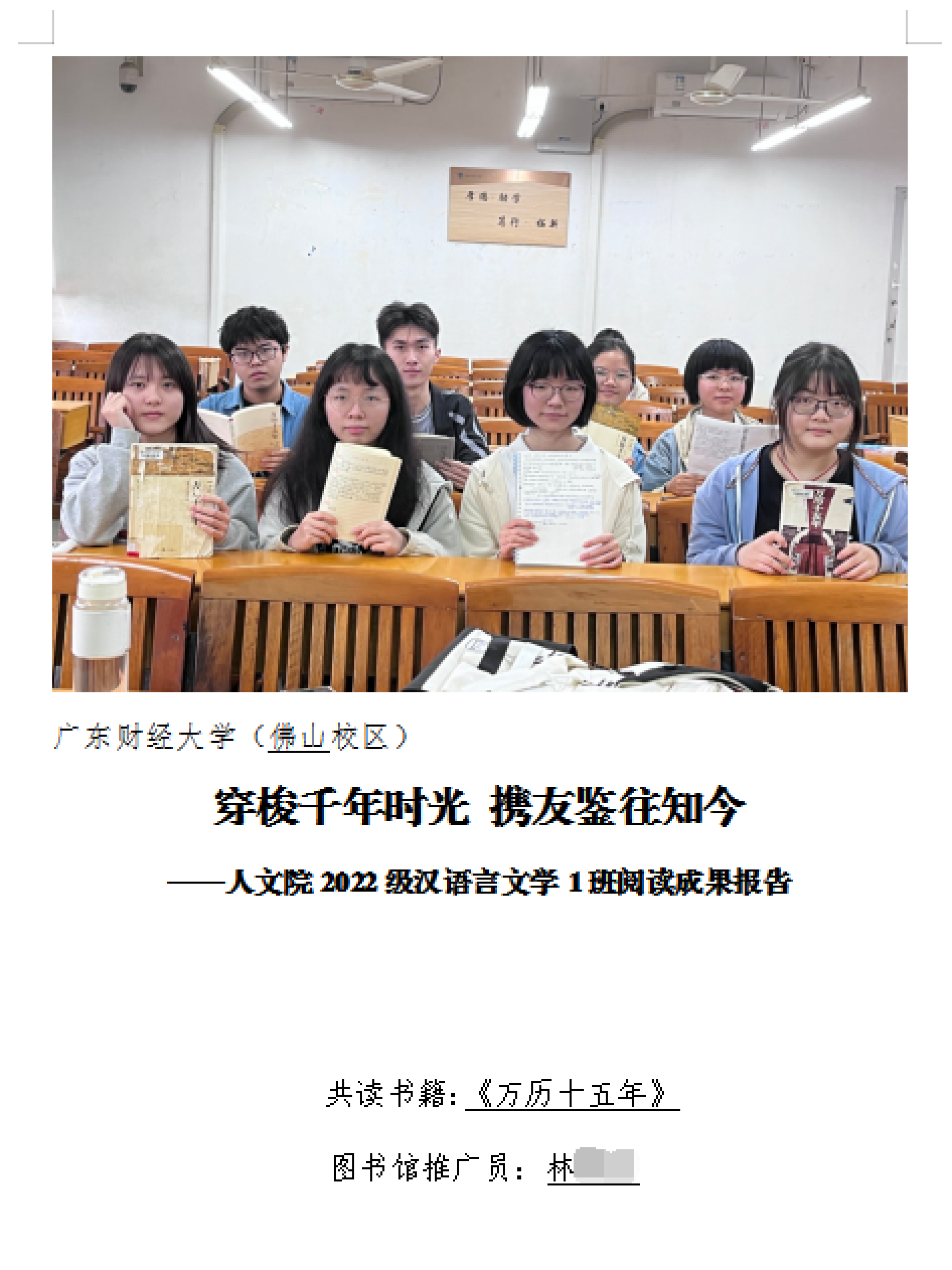 图书馆从《广东财经大学经典名著推荐书目》(初稿)中选取《诗经》《国富论》等22种中外经典22种经典供参考并提供活动指引。同学们以班为单位,在图书馆推广员的带领下,紧扣活动主题,线上线下共读一本经典,并通过讨论、朗读、展演等形式进行深入的交流和分享,最终汇集成班级阅读成果报告和视频。