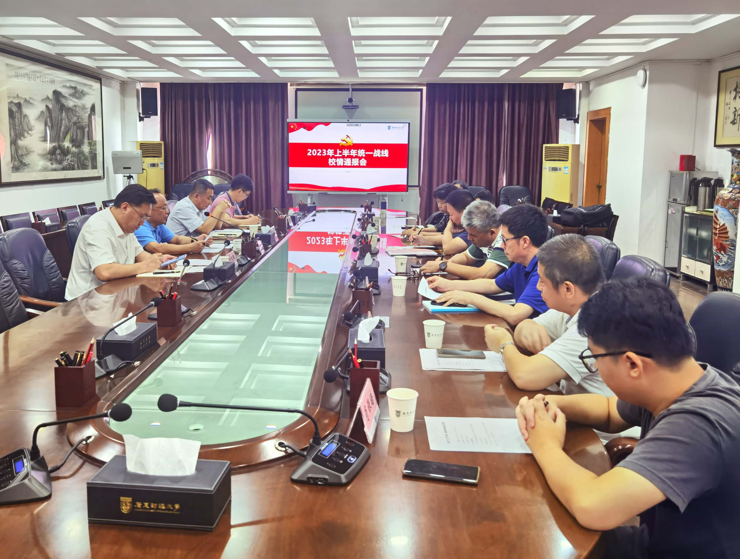 7月5日上午,学校在行政楼第一会议室召开2023年上半年统一战线校情通报会。 校长于海峰, 统战部部长陈光团,党办校办主任刘大鹏,组织部副部长刘文基,统战部副部长曾宪怀,民革支部主委段军山,民盟支部主委张军华,民建支部主委顾文静,民进支部主委张军,农工党支部主委颜运秋,九三学社支社社长武刚,知联会会长田忠辉以及佛山市人大代表肖银皓参加会议。陈光团主持会议。