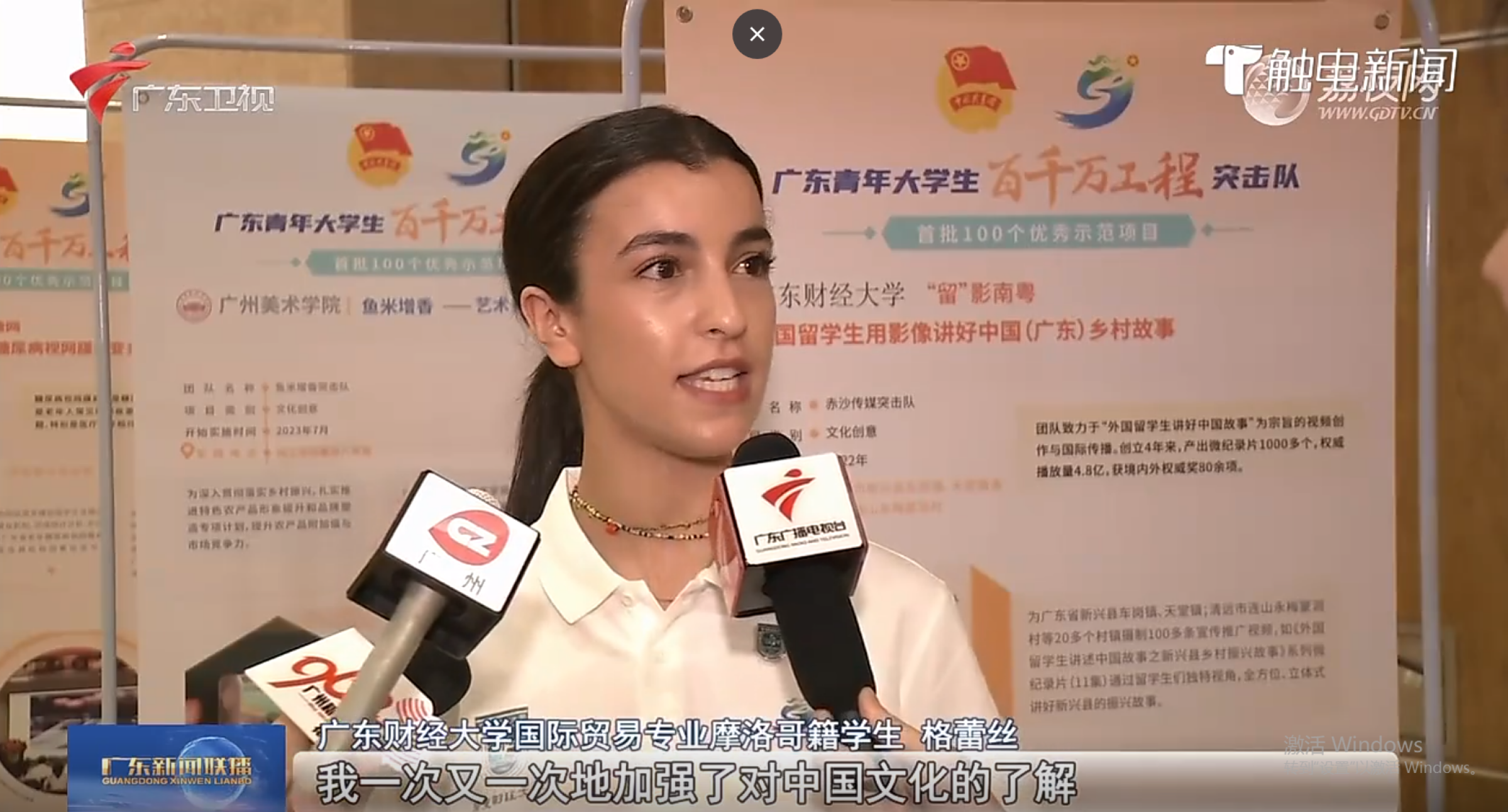 “‘留’影南粤”团队作为全省3支优秀团队代表之一,在活动现场作分享,分享了项目发起的初心、前期开展的实践及作为青年大学生“百千万工程”突击队将于假期开展的工作。团队成员Grace于活动后接受广东卫视采访。
