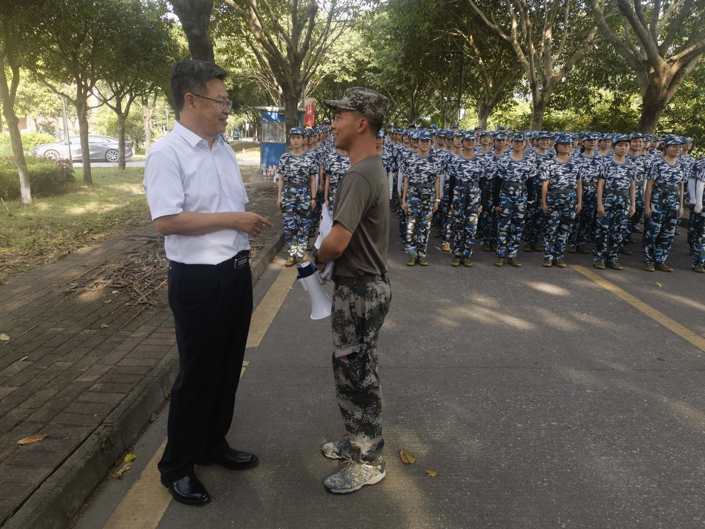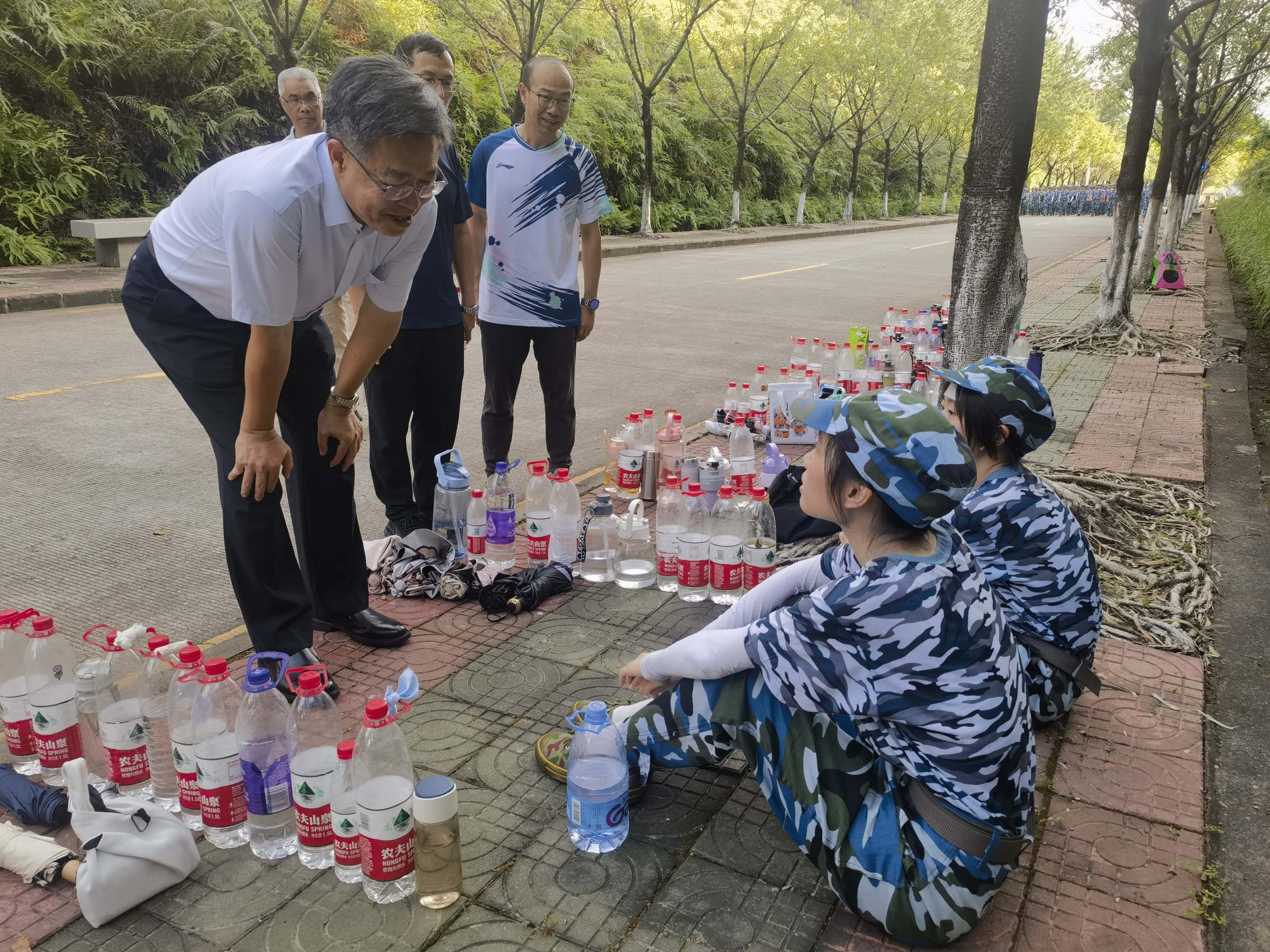 陈国栋叮嘱随行部门负责人,要高度重视学生军训过程中的安全问题,密切关注受训同学的各方面情况,做好后勤保障工作,让同学们在军训期间能够真切的感受到学校的关爱。