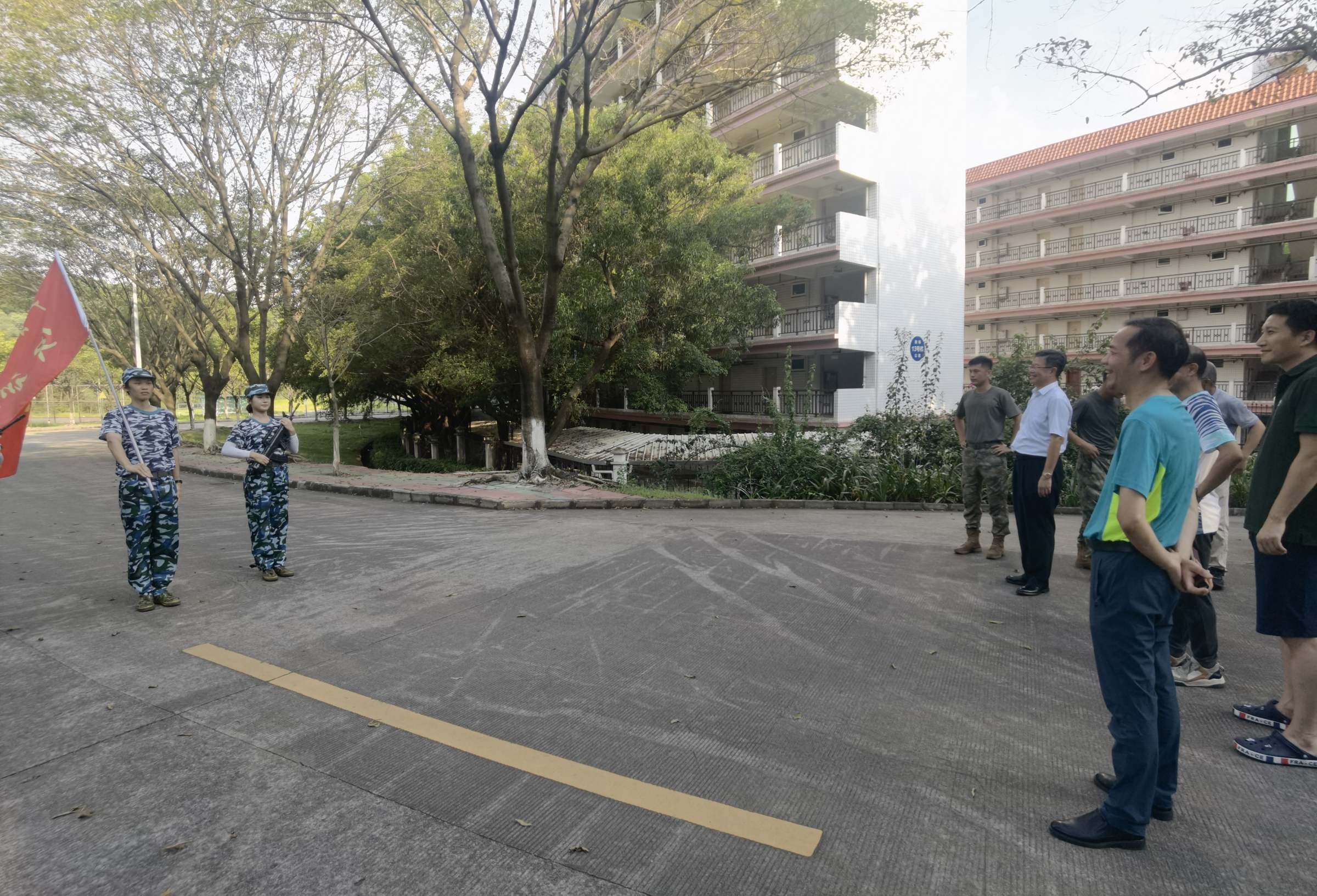 7月10日下午, 副校长陈国栋在佛山校区检查指导2022级学生军训团军训工作,慰问承训官兵和参训学生。学工部部长苏明华、副部长钟雄星及学工部相关科室同志陪同检查。相关学院党委书记、副书记以及辅导员老师在军训现场关心学生军训情况。