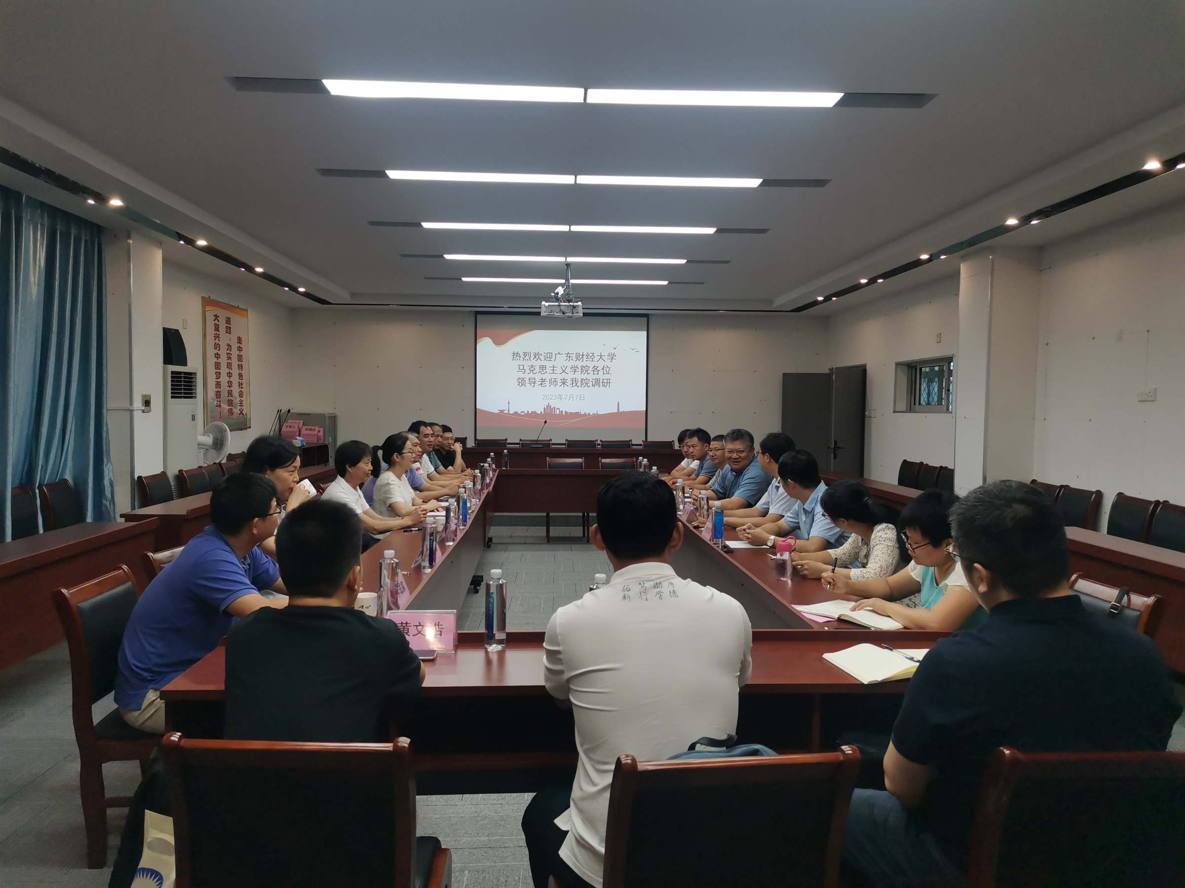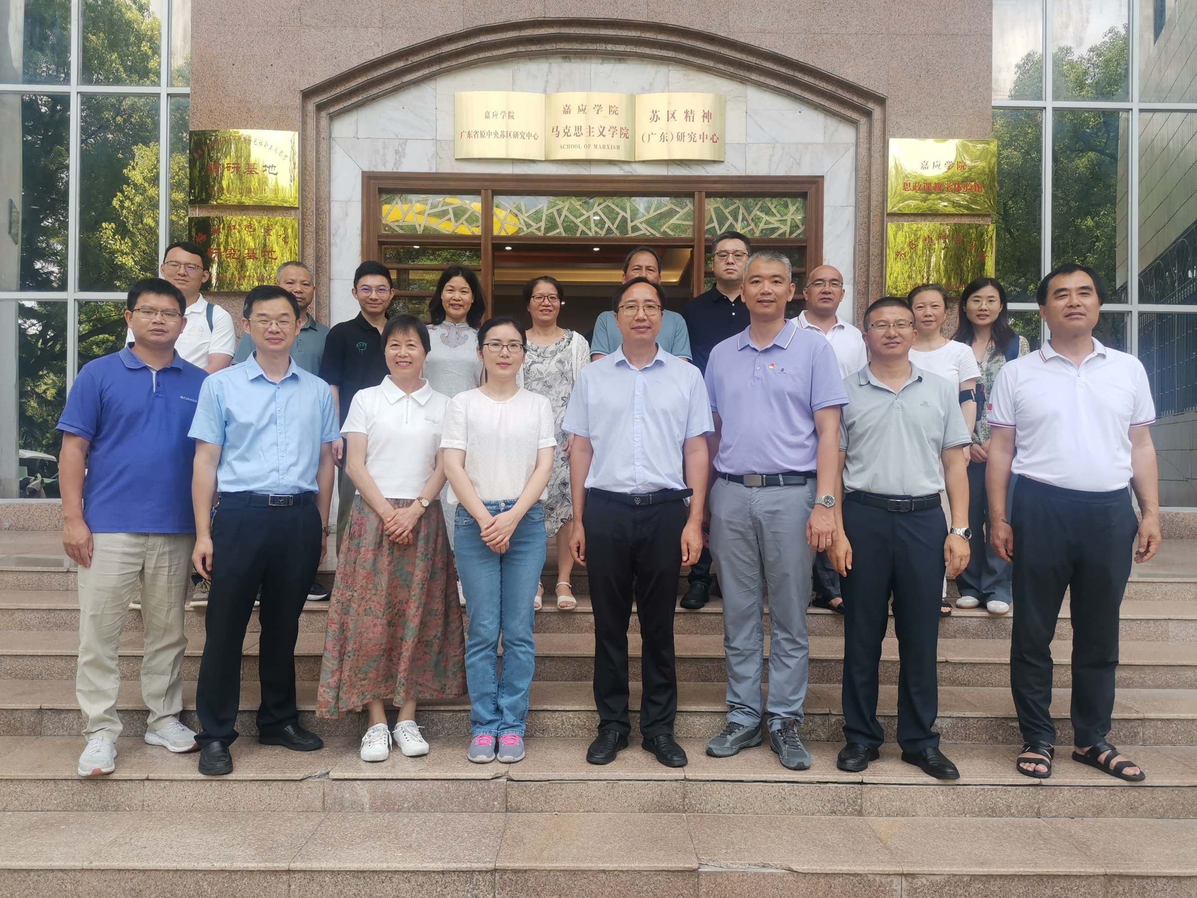 7月7日上午,马克思主义学院院长袁继红、党委书记张小洁及院长助理、教研室主任、专兼职思政教师等一行10人前往嘉应学院马克思主义学院开展调研交流。嘉应学院党委书记吴琦,科研处处长沈健,马克思主义学院院长杨其虎、副院长李学明及各教研室负责人参加了交流座谈。座谈会由杨其虎主持。
