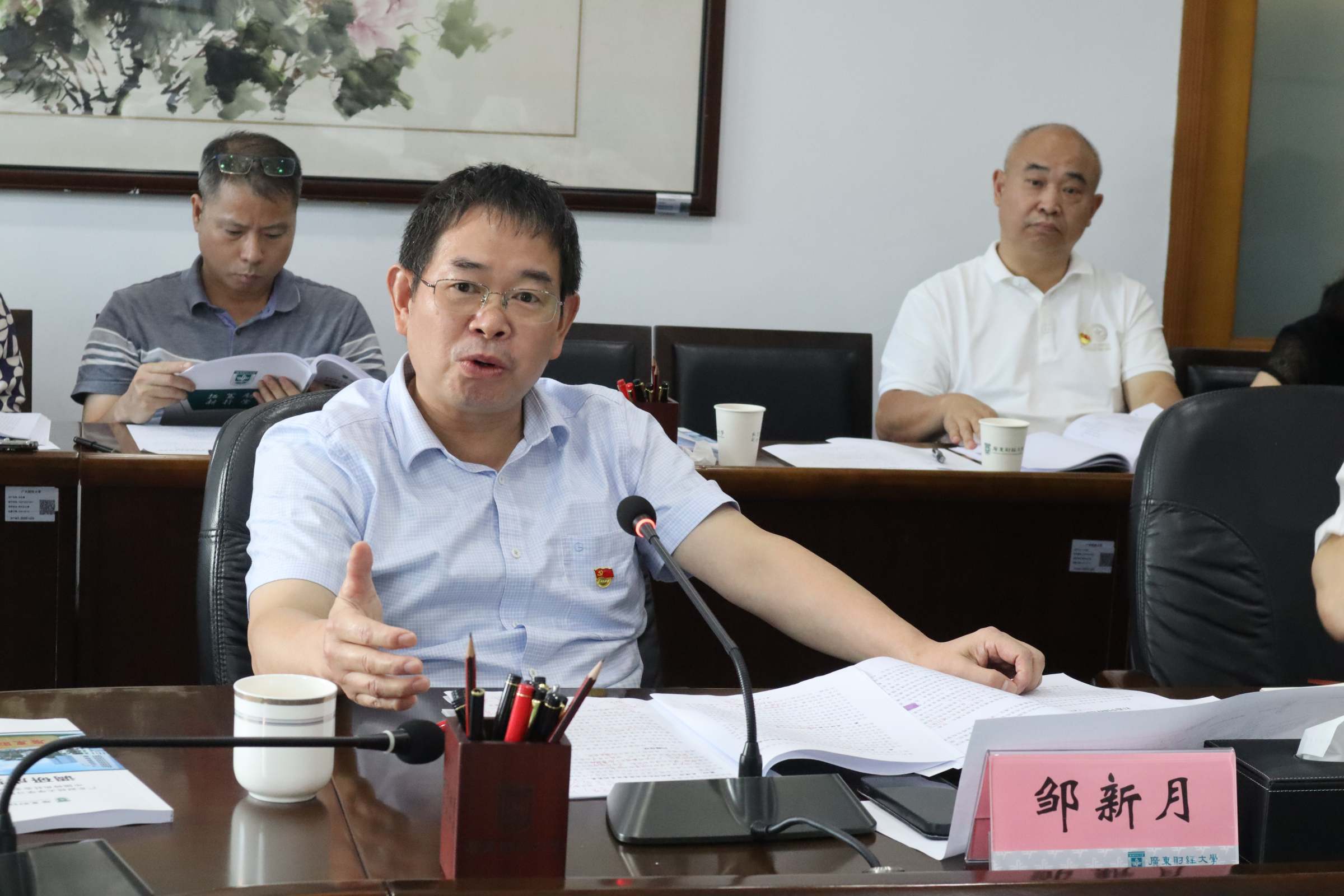 副校长邹新月围绕“完善决策咨询报告认定制度建设”专题进行汇报。他指出,完善决策咨询报告认定制度建设,推进学校资政服务上台阶,建设中国特色新型智库具有重大意义。近年来,学校在推进建设一流科研和社会服务体系,加强决策咨询报告研究方面取得了一定成效,但在决策咨询报告管理中也存在一些问题,他建议要制定学校决策咨询报告认定办法,完成建章立制 ,开展有组织科研,加强智库管理队伍建设,撰写高质量决策咨询报告,服务党和政府决策,发出“广财声音”,贡献“广财智慧”。