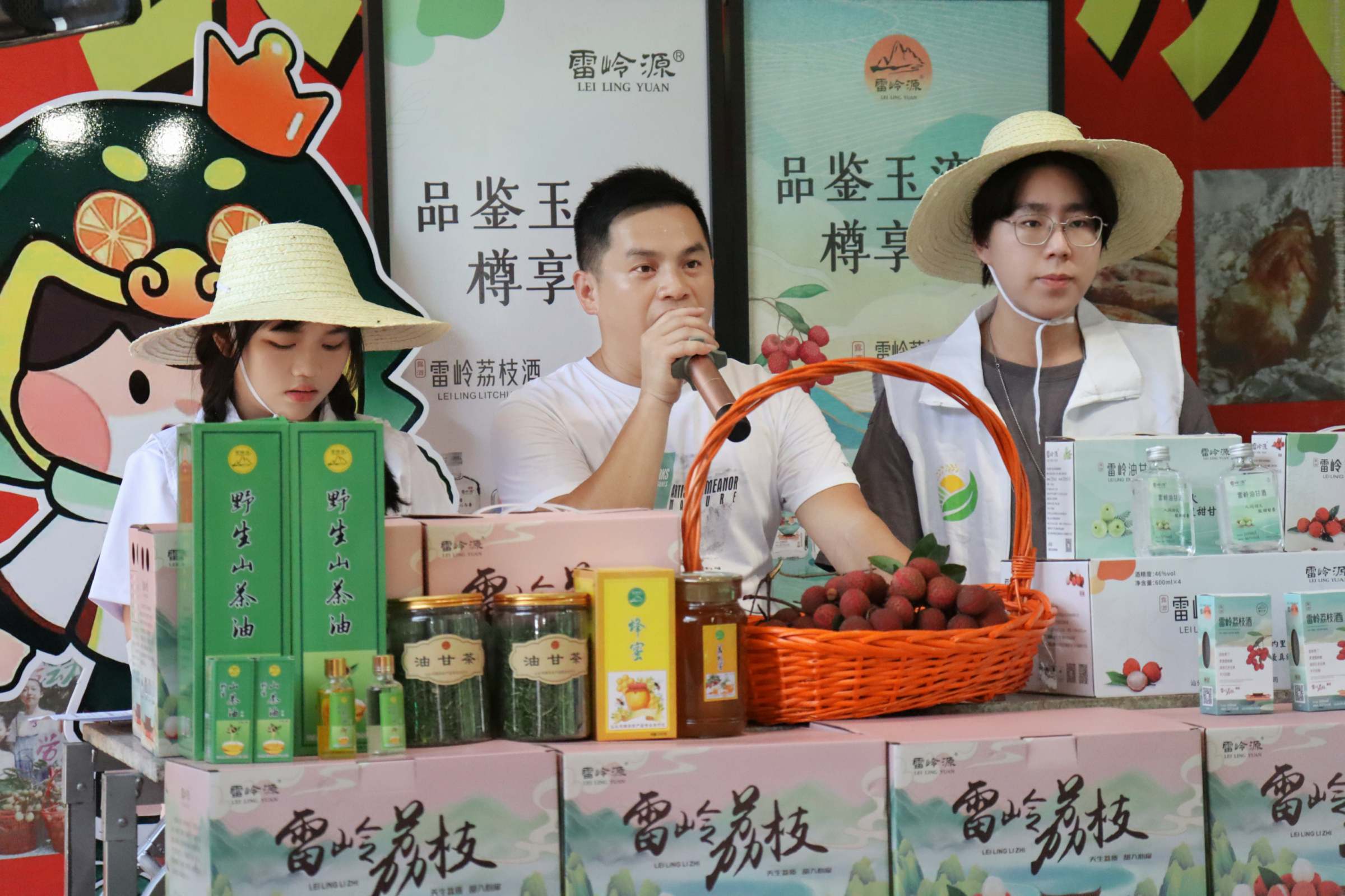 7月11日,我校“冠军助农”百千万工程突击队携手体操世界冠军陈一乐,深入汕头雷岭开展助农电商直播等活动。团队采用户外果园“流动展示”、室内“定点展示体验”等直播方式,在线讲解雷岭的荔枝及其农副产品的历史渊源、生长特点与文化内涵,以青春之行助“荔”百千万,讲述雷岭荔枝的产业振兴故事。