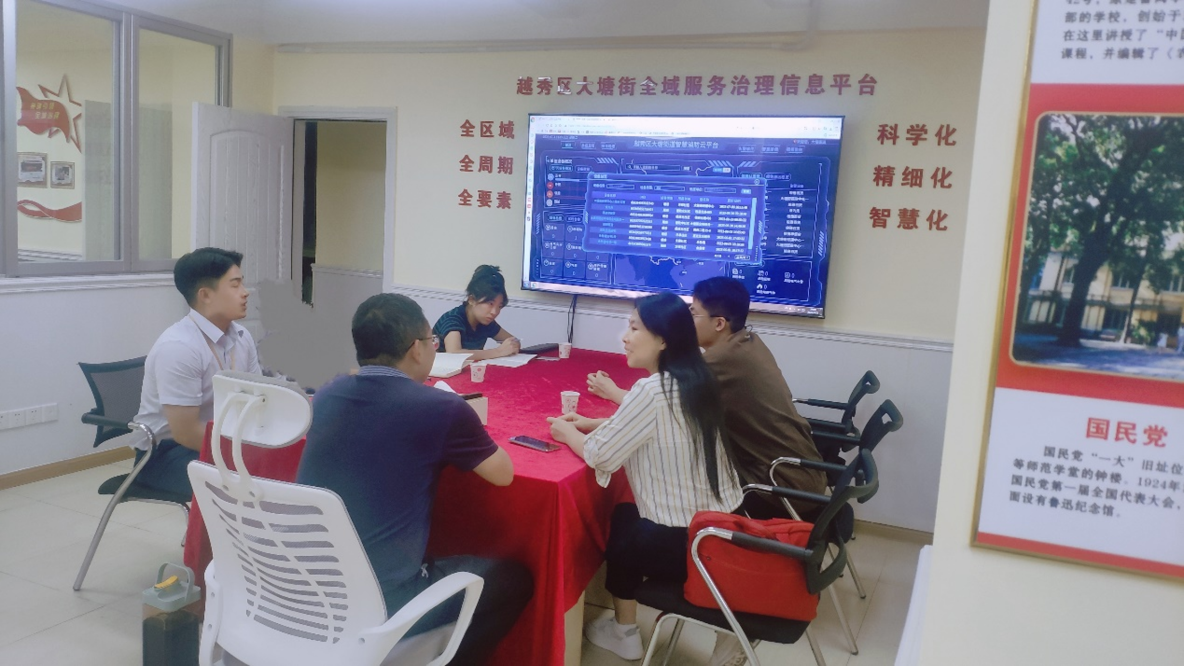 为深入开展学习贯彻习近平新时代中国特色社会主义思想主题教育,我校公共管理学院作为城市管理研究联盟成员单位,依托学校和广州市城市管理和综合执法局校政合作,为学习和研究当前城市全域治理推进中的经验、难点与对策。7月11日下午,公共管理学院城市管理系主任王妙妙及2021级城市管理专业学生组成城市治理现代化调研组至越秀区大塘街全域服务中心现场调研,大塘街街道办事处副主任刘子丰、全域治理试点企业广州城投李志豪等参加本次调研活动。