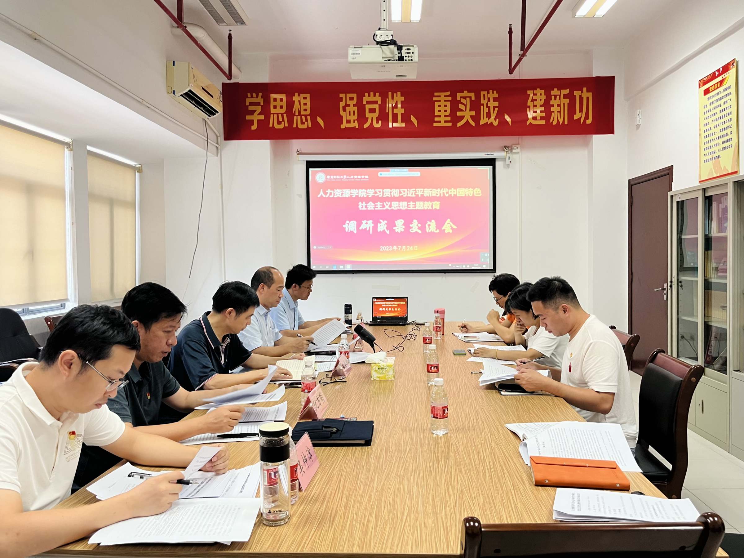 7月24日下午,人力资源学院在广州校区北二801会议室(线上同步)召开学习贯彻习近平新时代中国特色社会主义思想主题教育调研成果交流会,学校党委常委、组织部部长郑金栈线下到会指导,学院全体党委委员、副院长顾文静、师生党支部书记、全体系主任、全体辅导员共19人与会。会议由学院党委书记黄东阳主持。