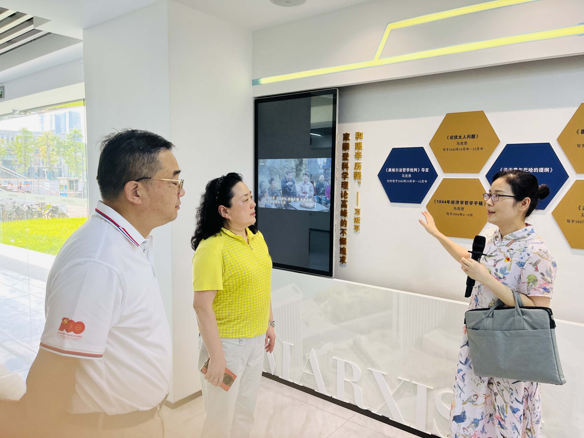 会后,省委主题教育办和指导组一行还走访了学校“智慧思政教育共创基地”,现场查看部分整改项目整改工作落实情况。