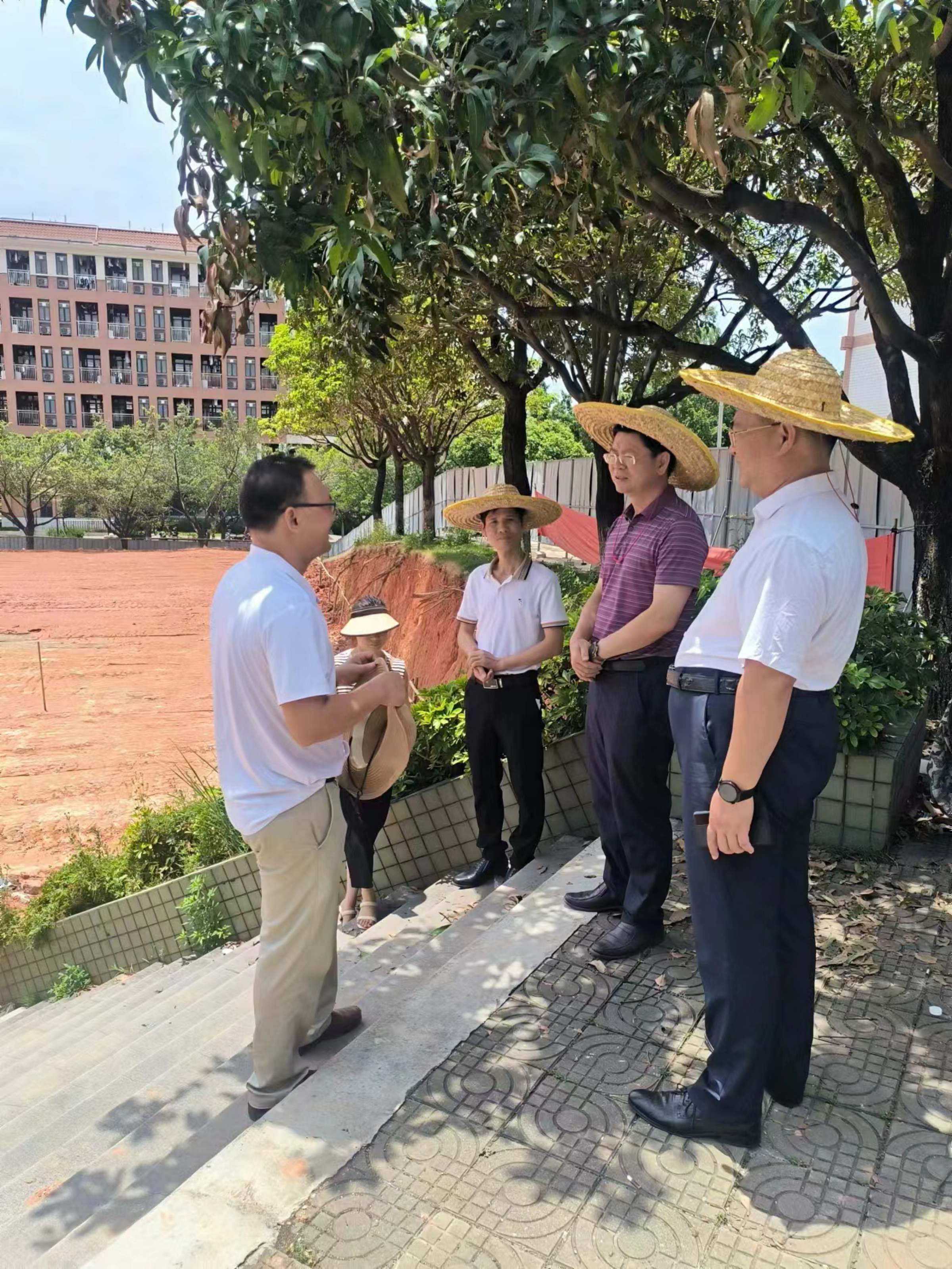 8月5日上午,校党委副书记罗贤甲前往佛山校区检查指导师生综合服务中心项目建设,资产经营公司董事长刘金水和项目合作方负责人江总参加了实地调研。