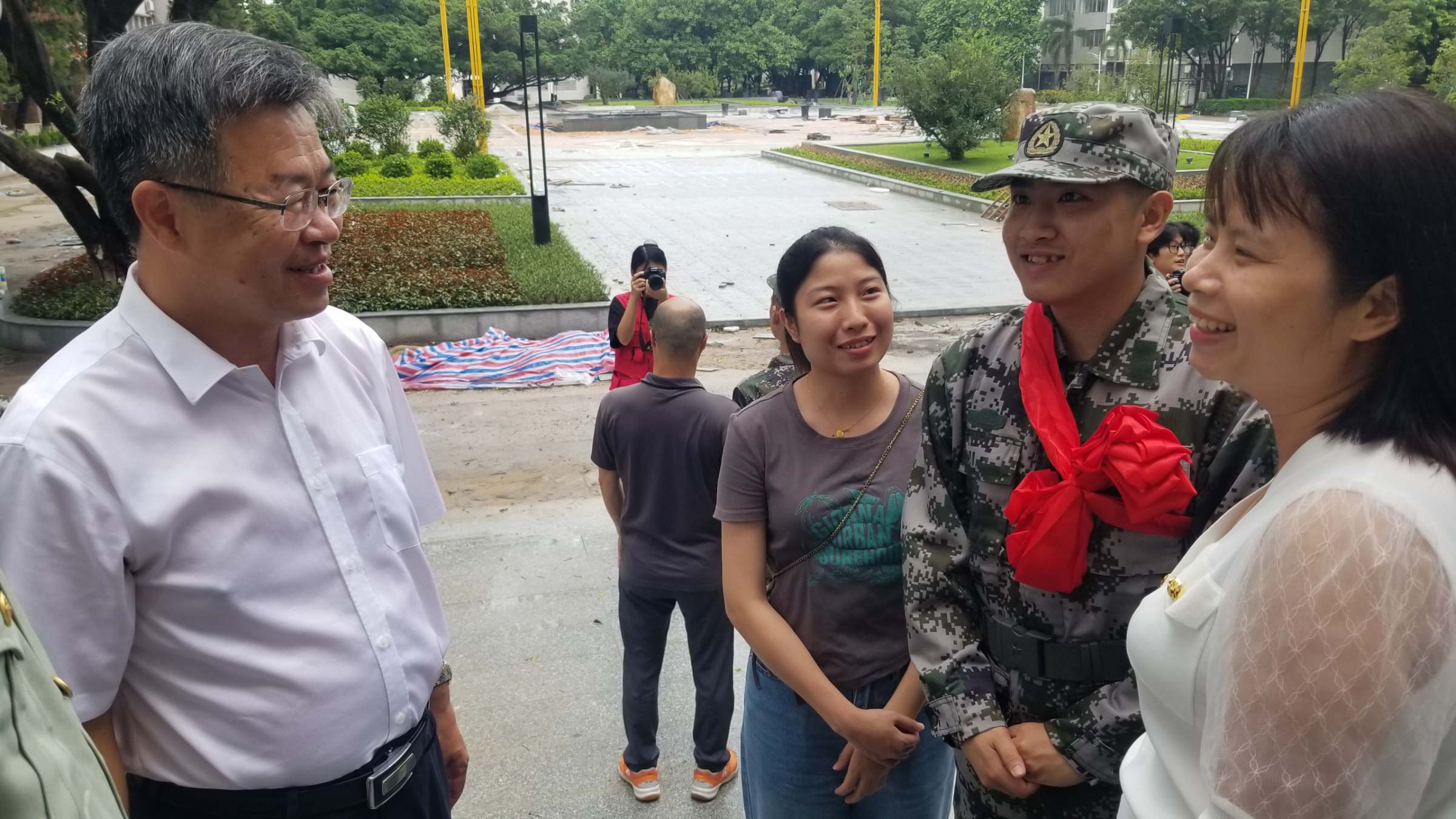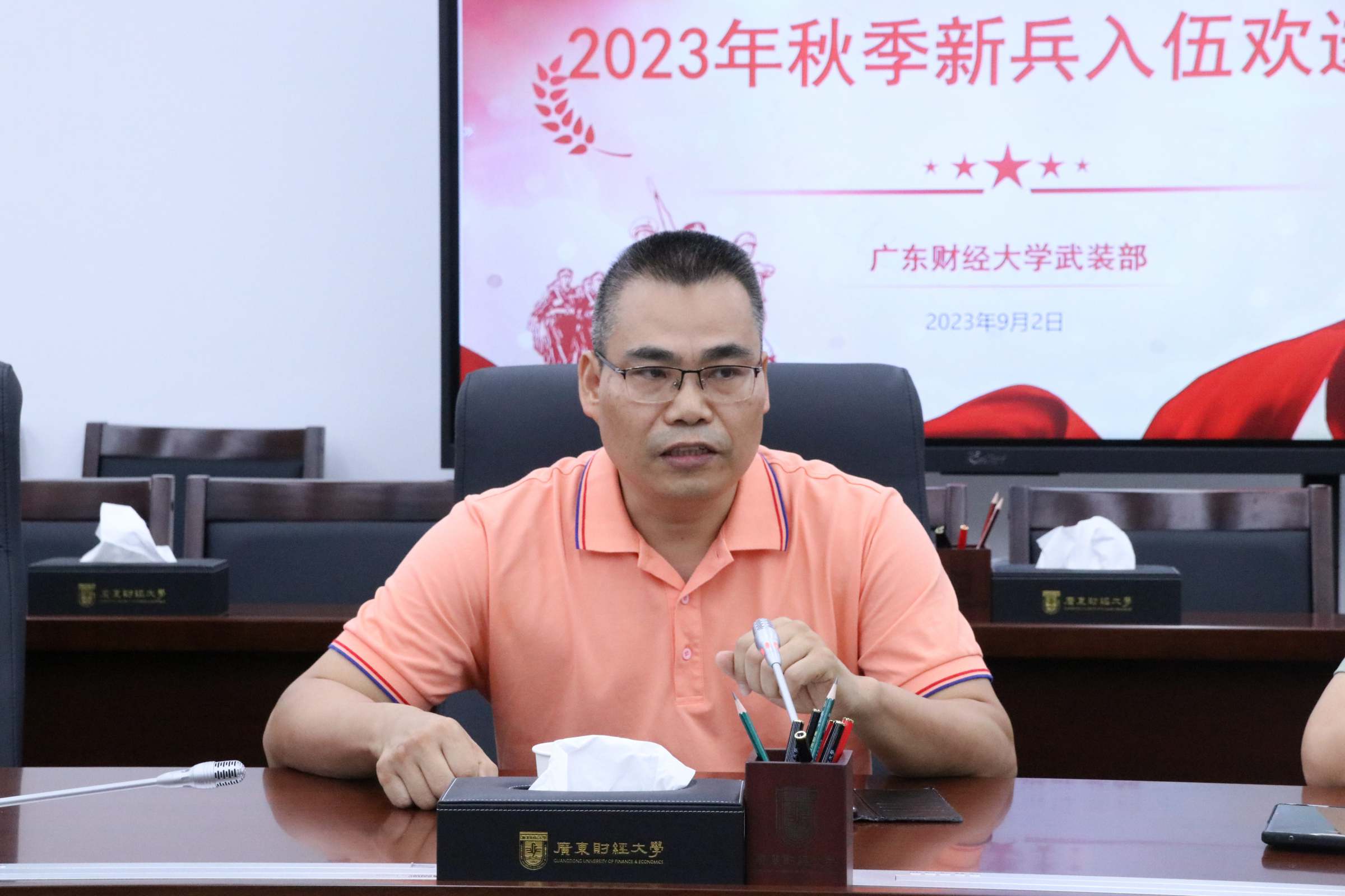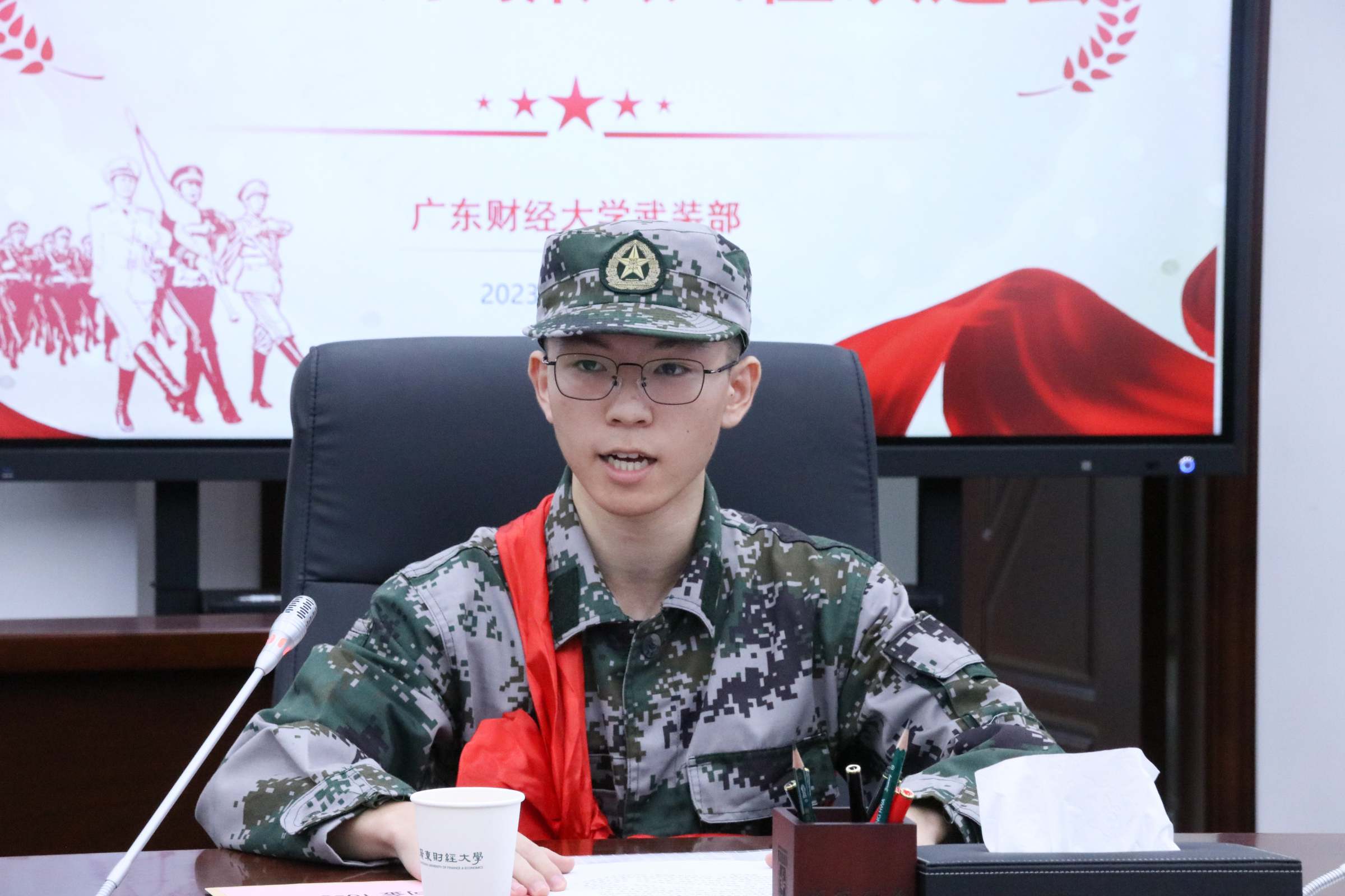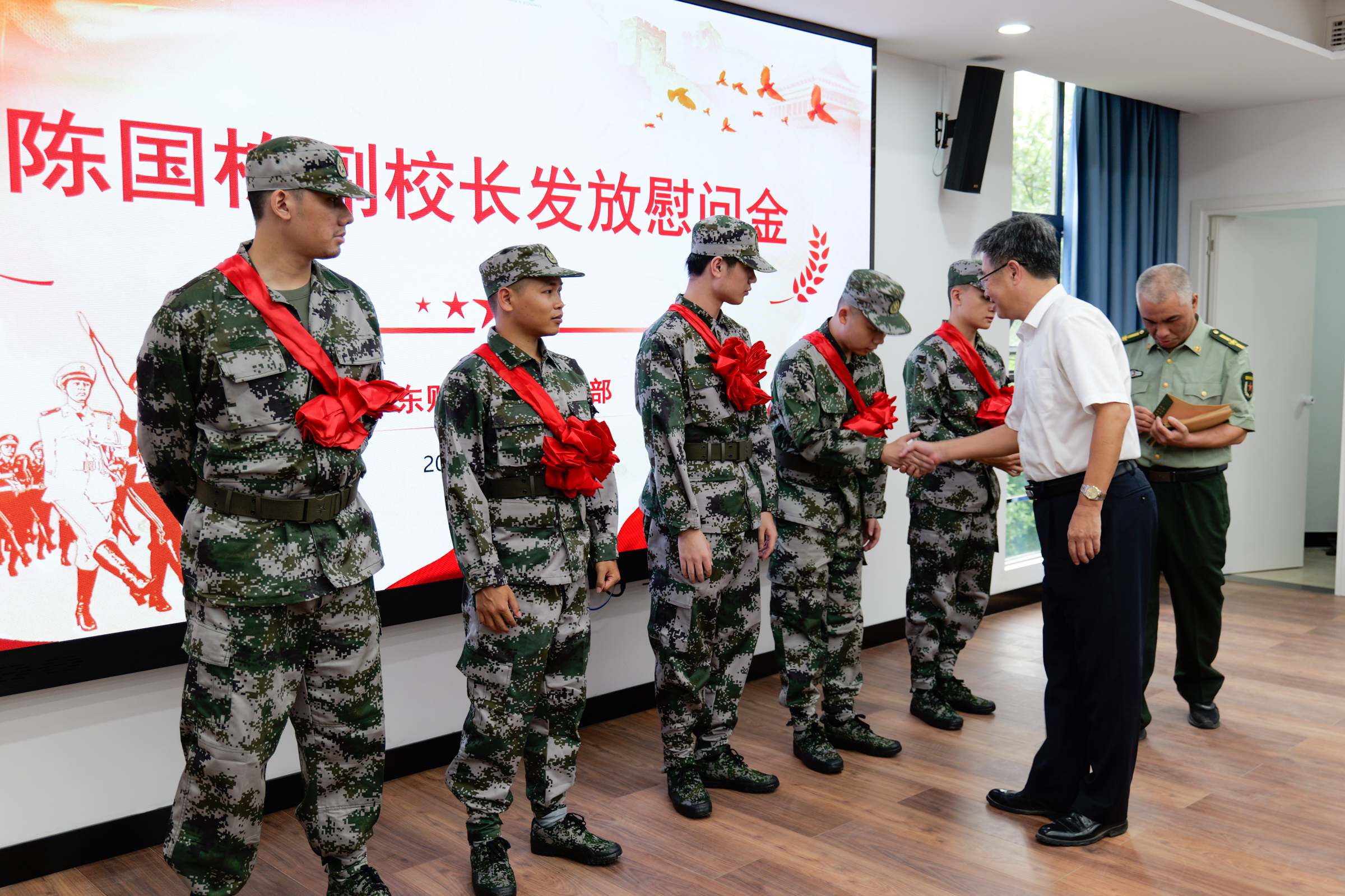 陈国栋发表讲话,他首先代表学校党政领导向入伍新兵表示热烈祝贺,对他们投笔从戎,参军入伍报效祖国的精神进行了高度肯定,并对入伍同学提出三点希望:一要牢记使命,筑牢忠诚品格;二要努力拼搏,刻苦学习训练;三要锤炼过硬作风,立志军营锻炼成才,成为有道德、有素质、有技能、有才干的高素质人才,树立起广财人的良好形象,用青春热血谱写了人生的壮丽篇章。