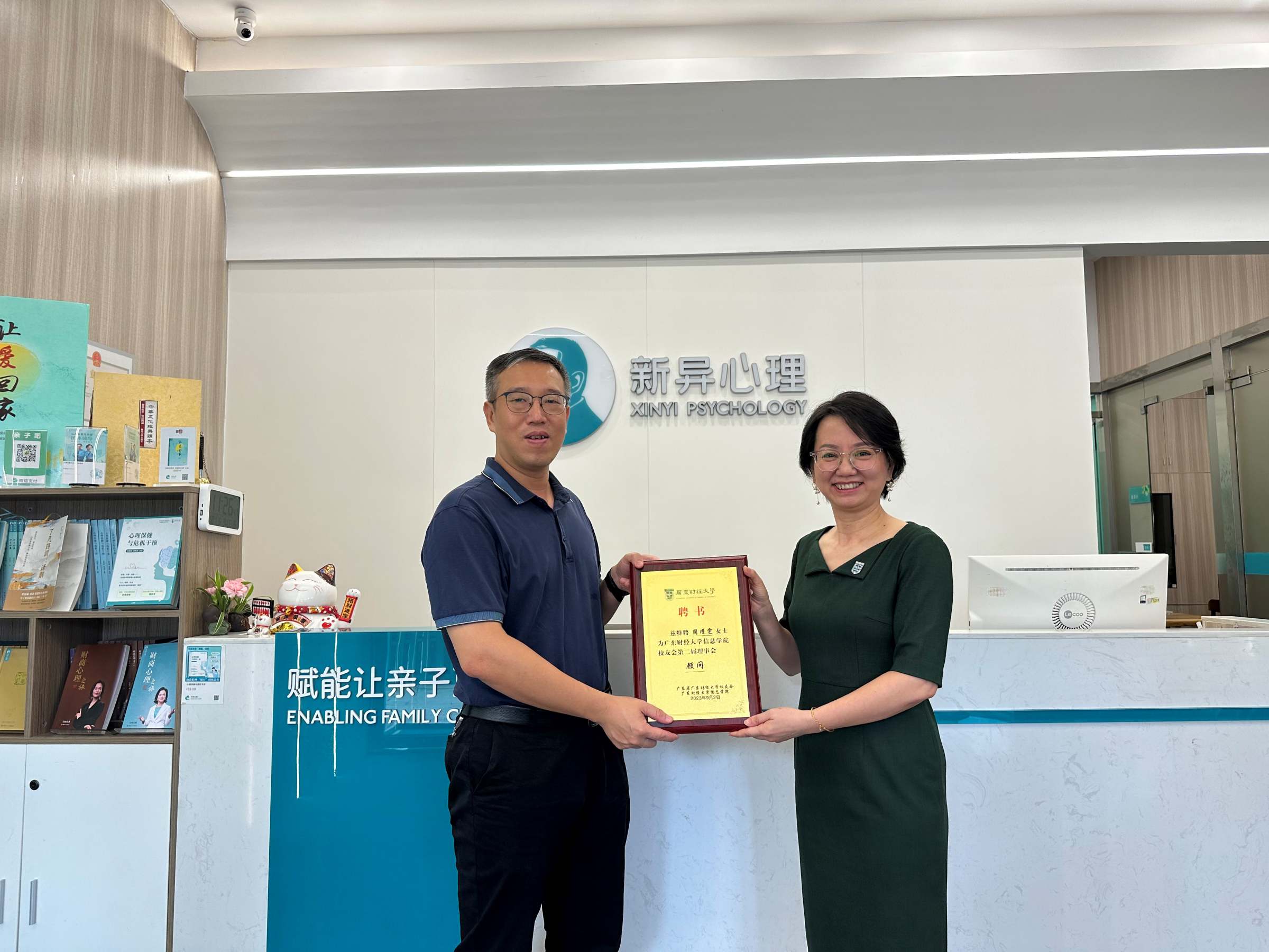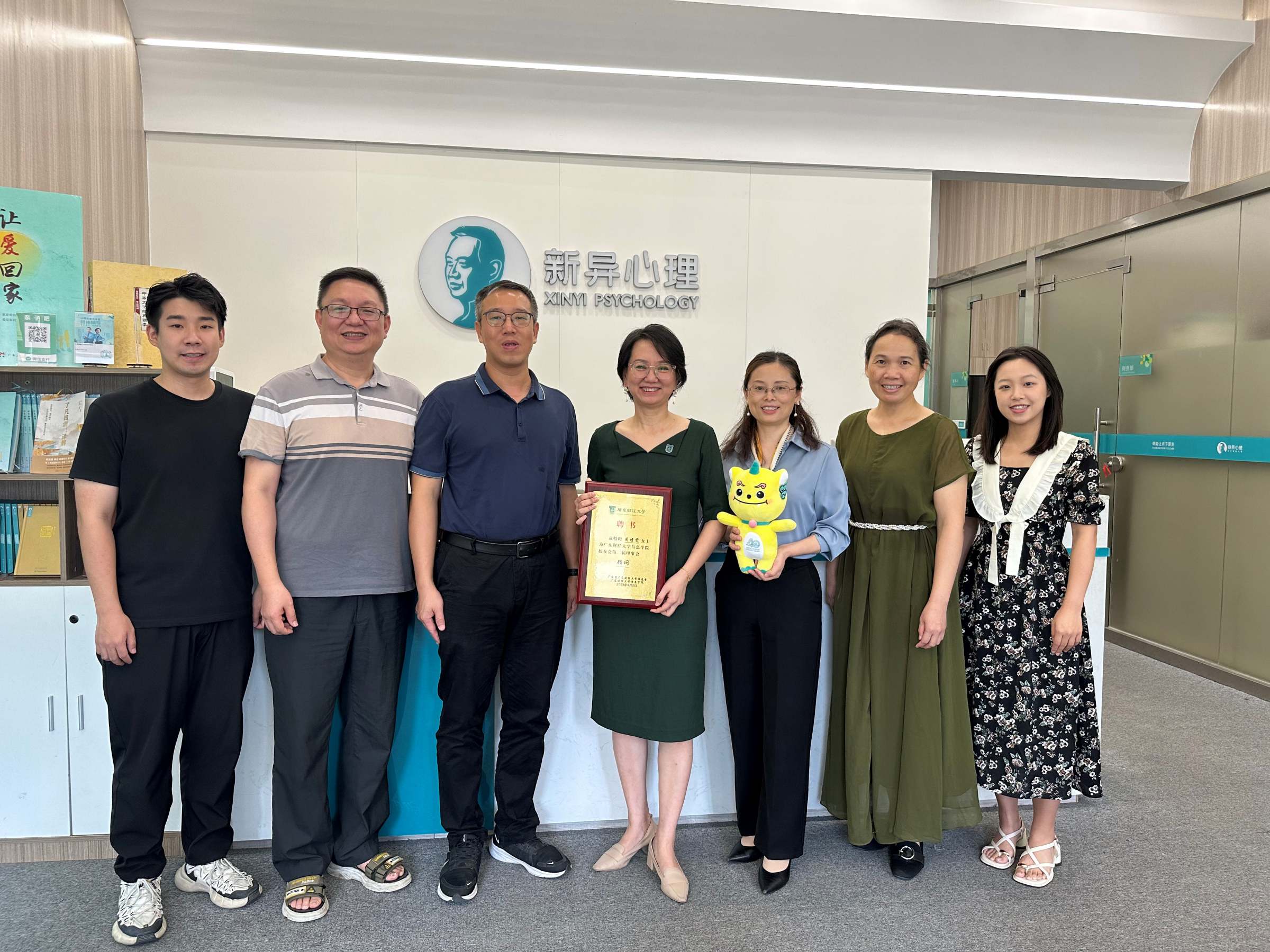 9月6日,信息学院党委书记邱启彬带队前往广州市番禺区新异心理咨询中心探访校友周瑾雯(原学院辅导员),同行的还有学院党委副书记董锦红、辅导员刘寒潋、何镇宇。