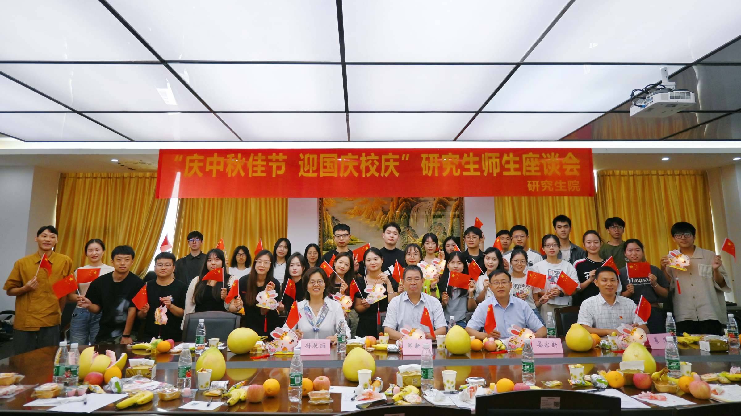 丹桂飘香迎校庆,学校深情庆双节。9月29日上午,研究生院在北三914会议室召开了“庆中秋佳节,迎国庆校庆”为主题的研究生中秋座谈会。副校长邹新月、研究生院院长晏宗新、副院长孙桃丽、蔡奕老师,以及新、老研究生代表等共三十余人参加活动。留校研究生与老师们在这里欢聚一堂,共度美好佳节。本次会议由孙桃丽主持。
