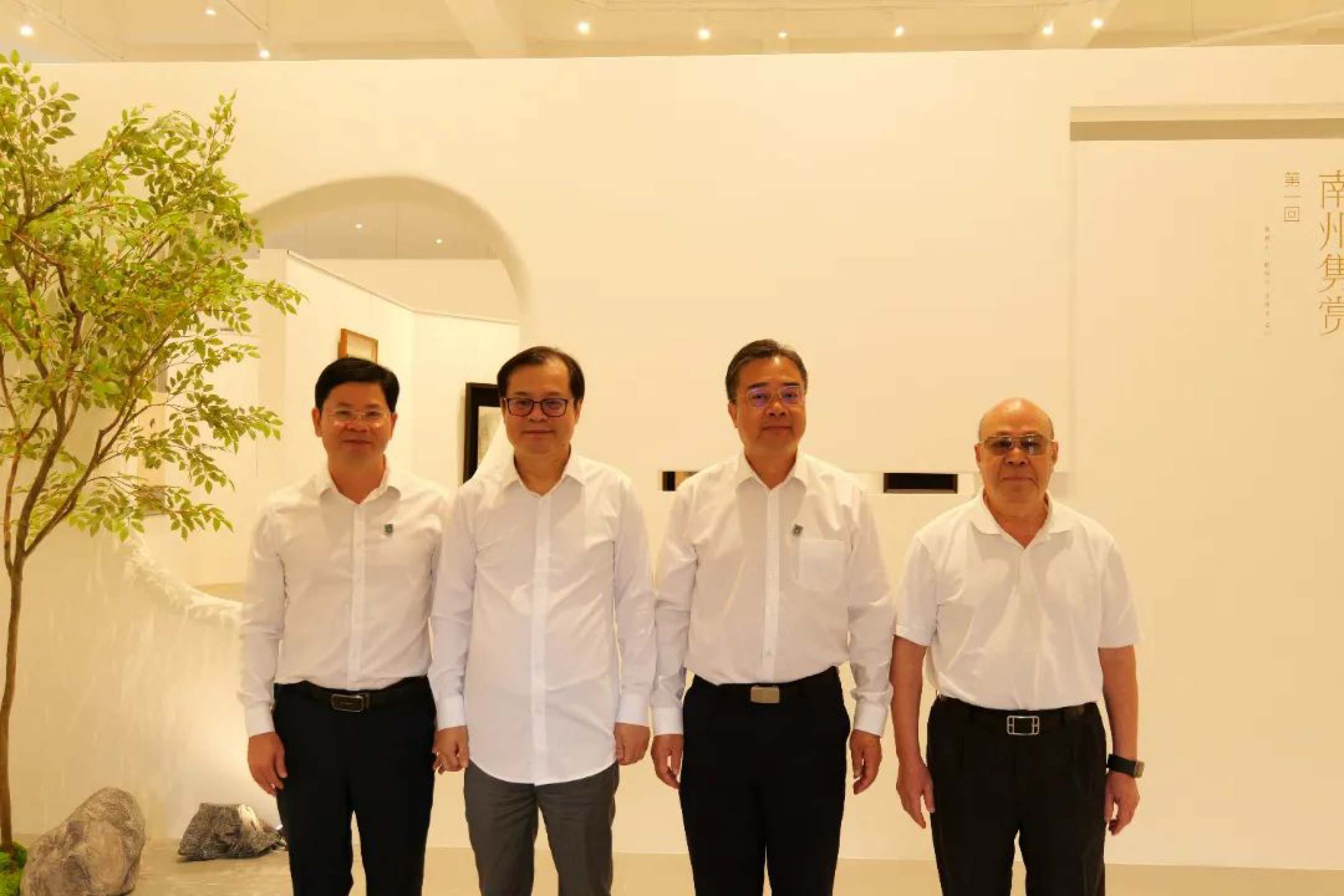 开幕式后,与会嘉宾移步室内观展。「南州隽赏——近现代名家书画作品展」展览了五十余件中国书画艺术作品,其中既有海上吴昌硕,也有北漂齐白石;既有“南张北溥”的张大千、溥心畬,也有“康梁”齐名的康有为、梁启超;既有以吴湖帆、王个簃、刘海粟、程十发为首的海派,也有高剑父、高奇峰、关山月、黎雄才为代表的岭南画派;既有新时期李可染、陆俨少的壮丽山水,也有黄胄、黄永玉的清新小品。而章太炎、沈尹默、顾廷龙、郭沫若、启功、赵朴初等学人书法,又称为时下一道风景。