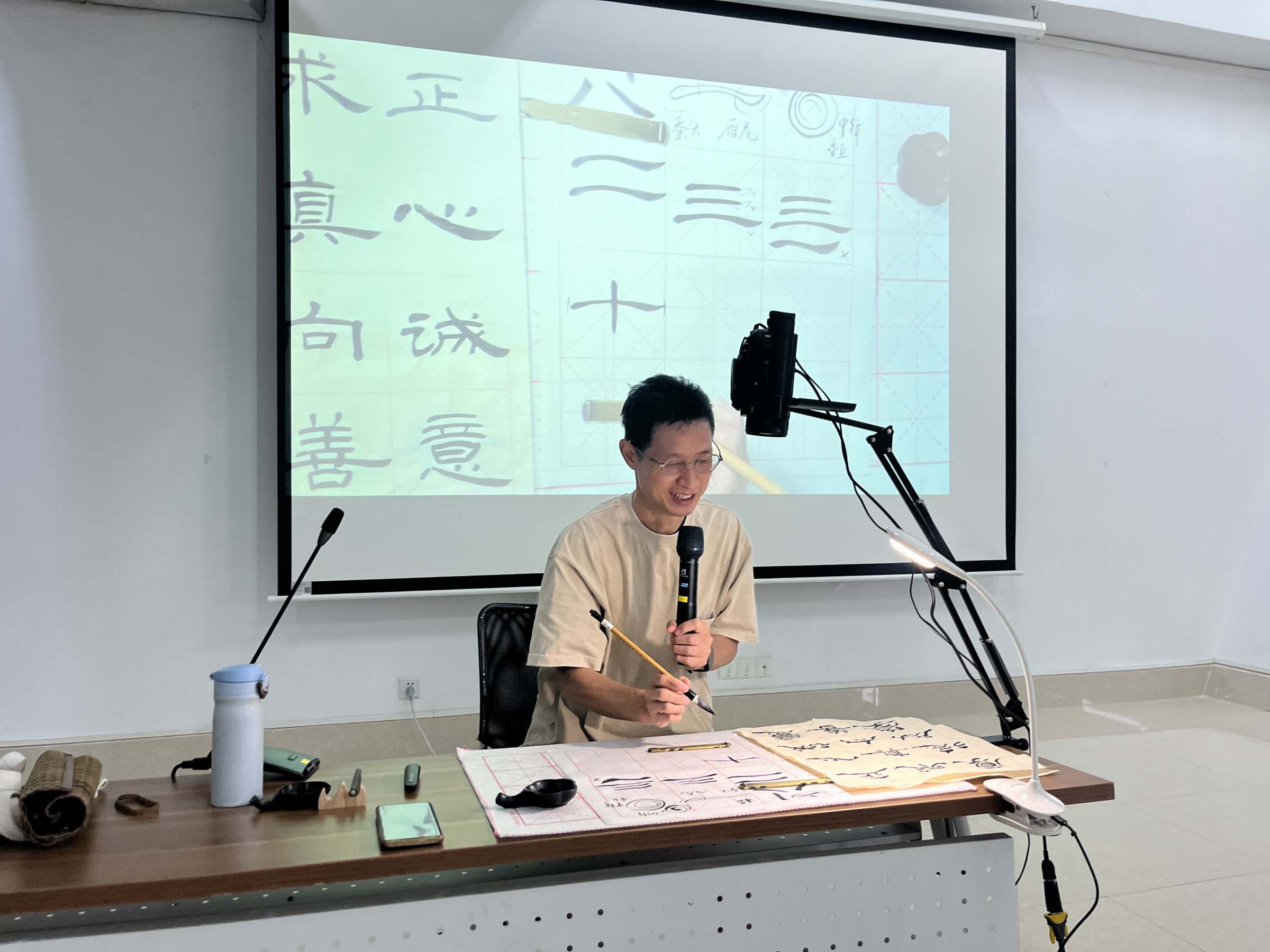 首先,王宇晖结合自身经历,向国际学生分享了自己学习书法的故事,鼓励学生在学习过程中体会中国古代隶书的魅力。