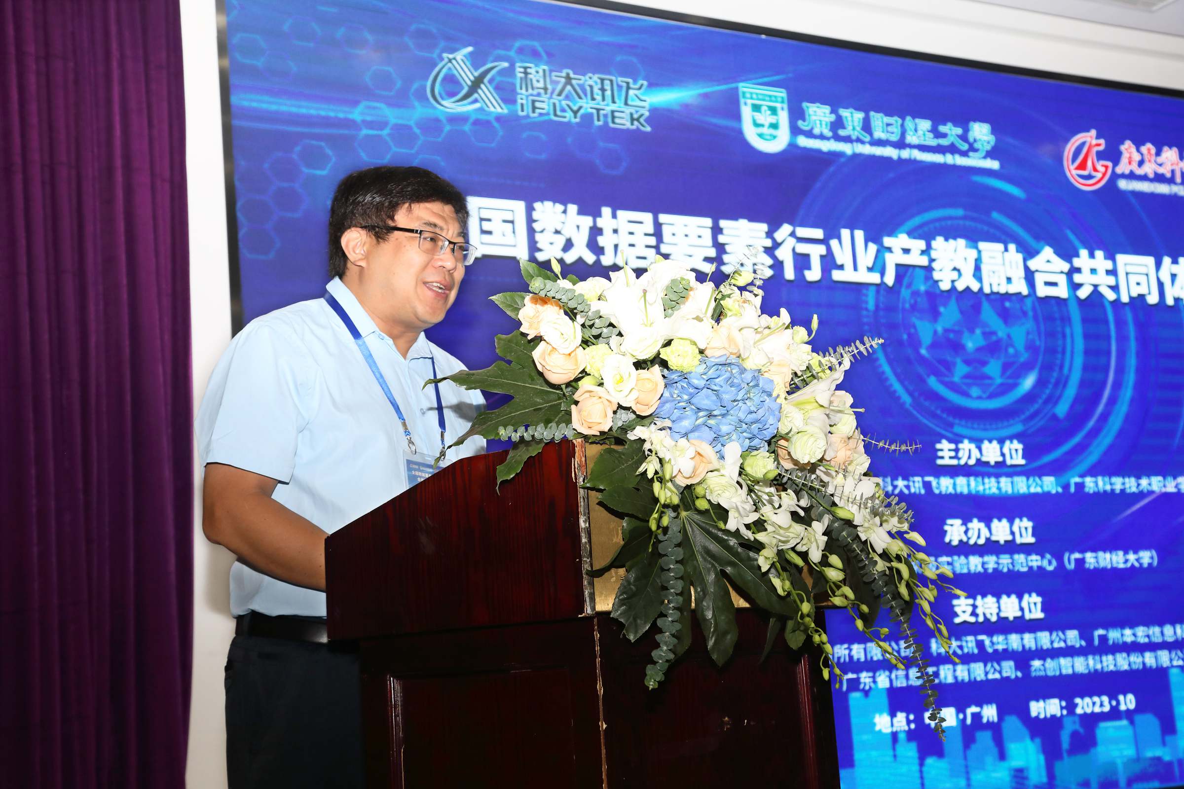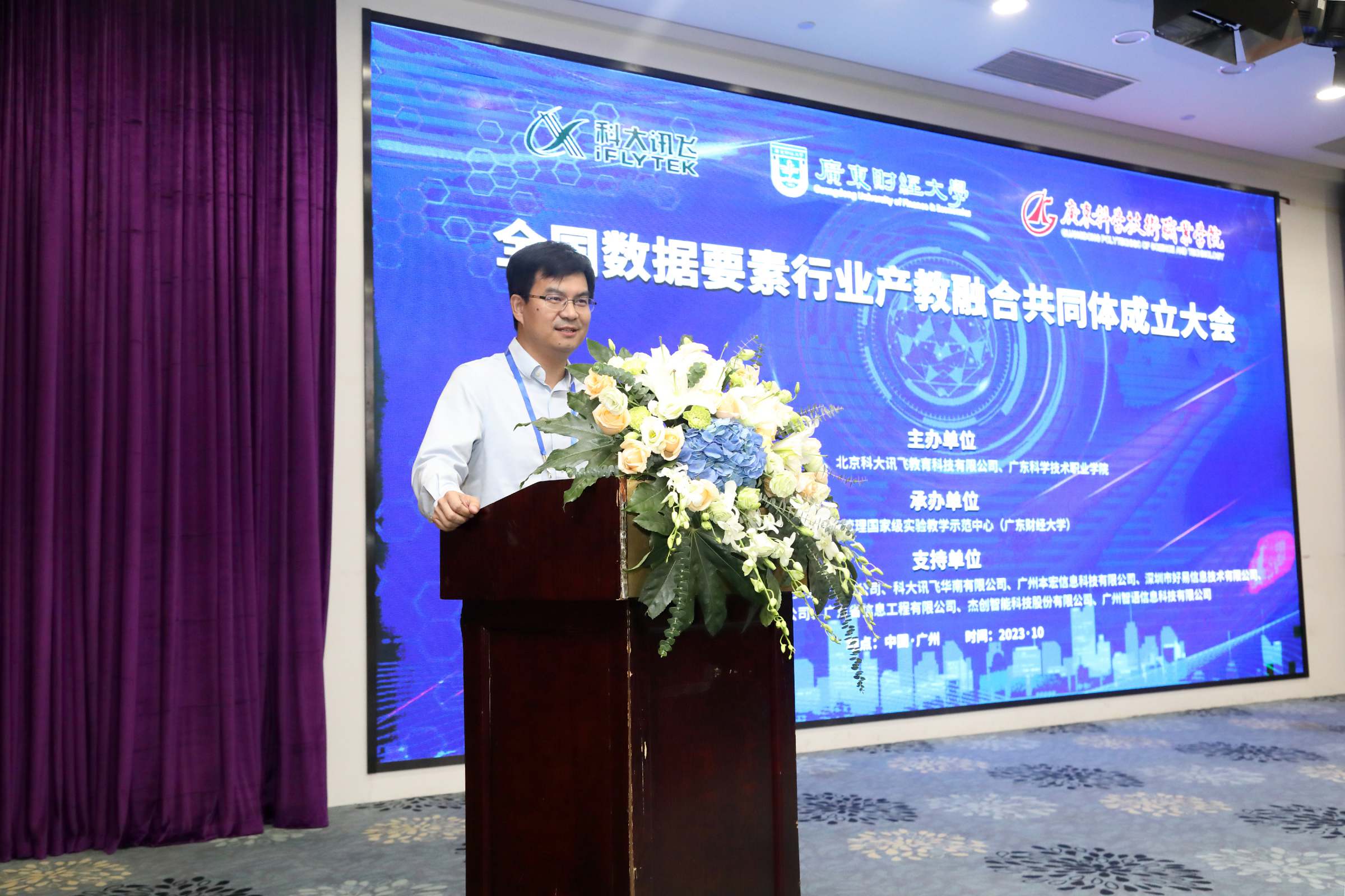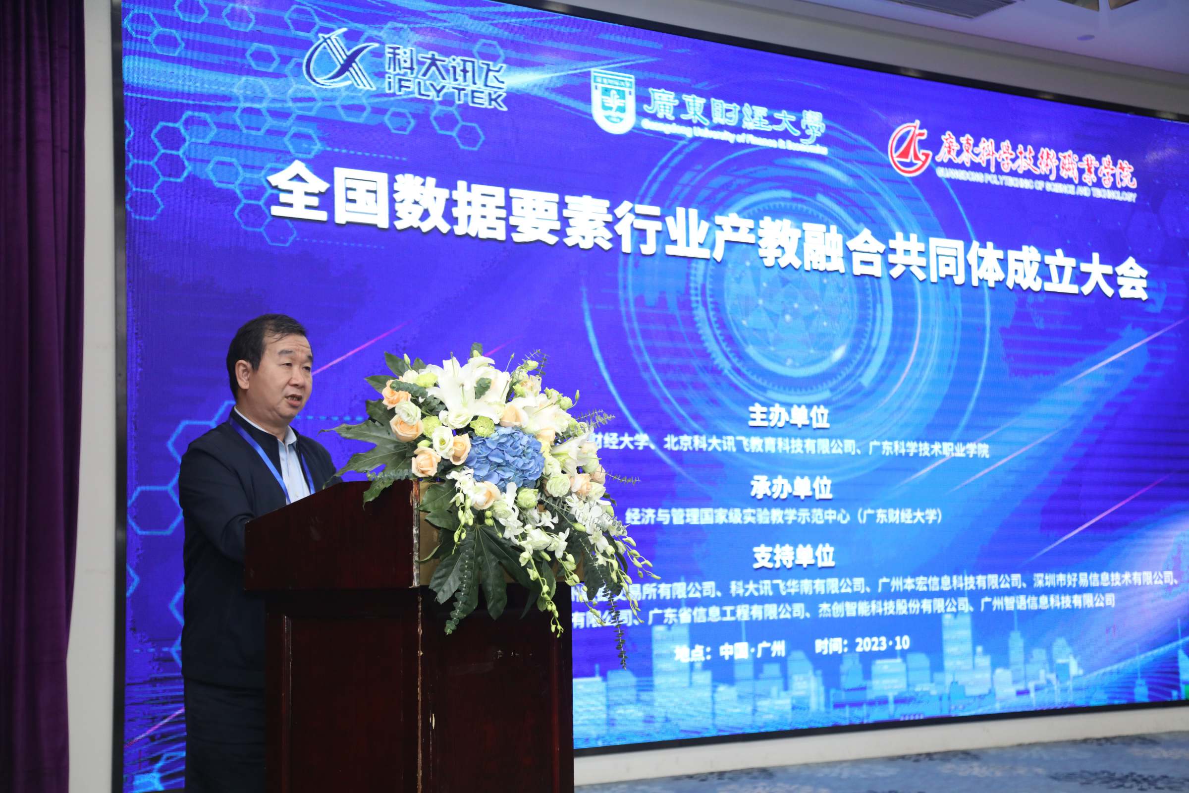 10月22日上午,全国数据要素行业产教融合共同体成立大会在广东财经大学成功召开。本次会议由共同体的三家牵头单位(广东财经大学、北京科大讯飞教育科技有限公司、广东科学技术职业学院)主办,经济与管理国家级实验教学示范中心(广东财经大学)承办,全国54家共同体成员单位的领导及代表,以及来自数据要素行业的本科高校、职业院校、科研院所、行业协会、上下游企业共100余人参加了成立大会。会议由经济与管理国家级实验教学示范中心主任姚维保主持。