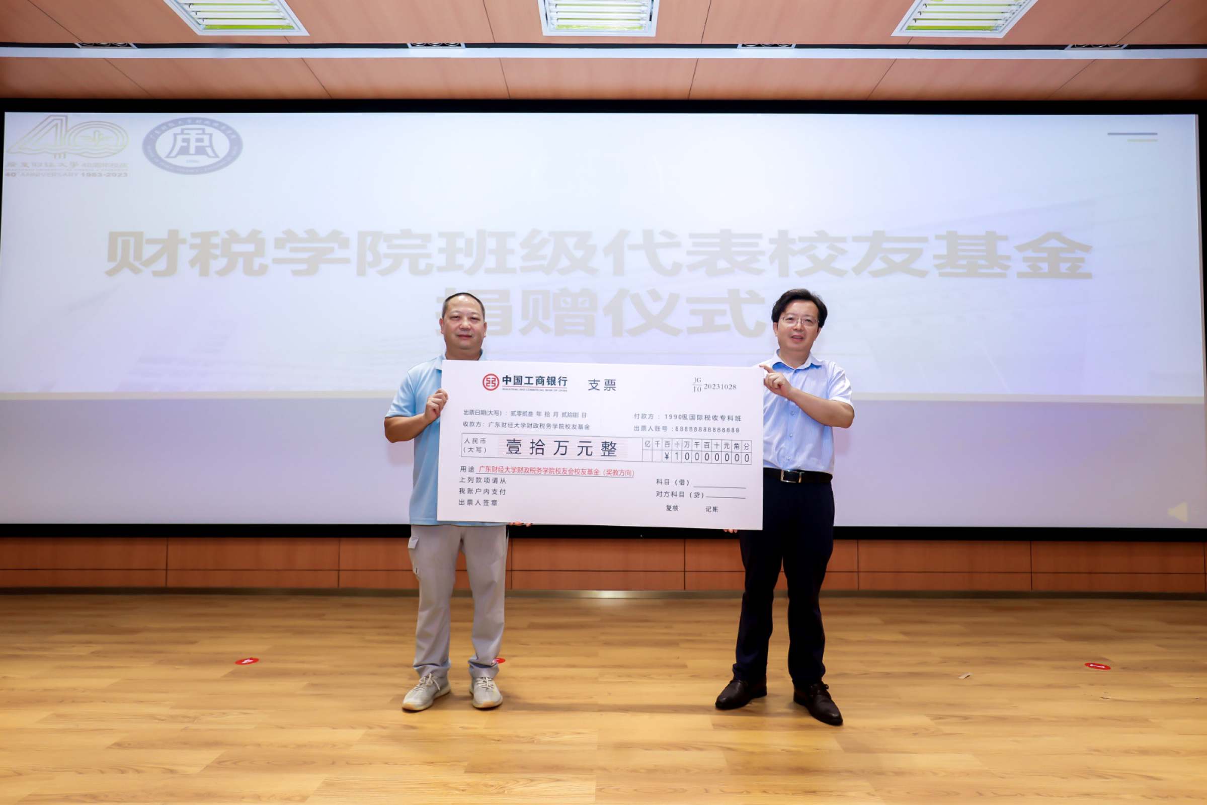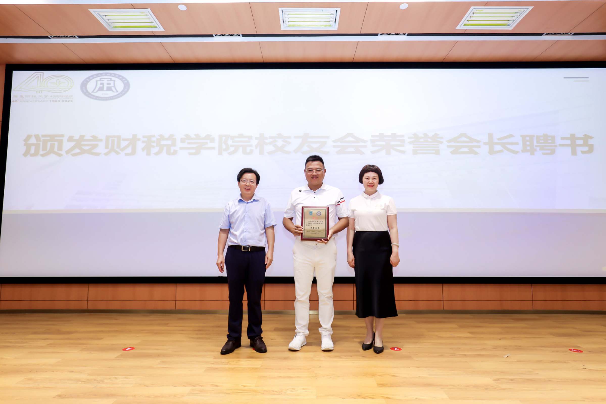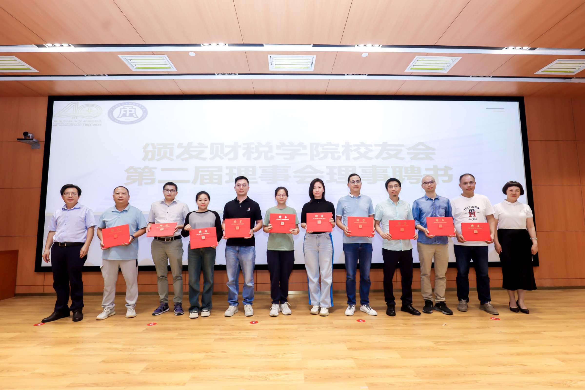 随后,新当选的第二届财税校友会理事会、监事会和基金会成员接受聘书。会长赖国华向大会汇报了财税校友会为构建校友沟通平台、助力学院发展、做好师生校友传承等方面所做的工作,并汇报了财税校友基金会为学校40周年校庆募集资金情况。现场举行了捐赠仪式,宝盛国际集团董事长陈伟向财税学院捐赠50万元财税学术论坛专项基金、财税校友会主席团向学院捐赠10万元校友会秘书处专项基金、班级代表李军代表90国税班向学院捐赠10万元校友基金。截止10月28日下午,由财税校友会倡议的校友、班级捐款共募集校友基金达109万元。