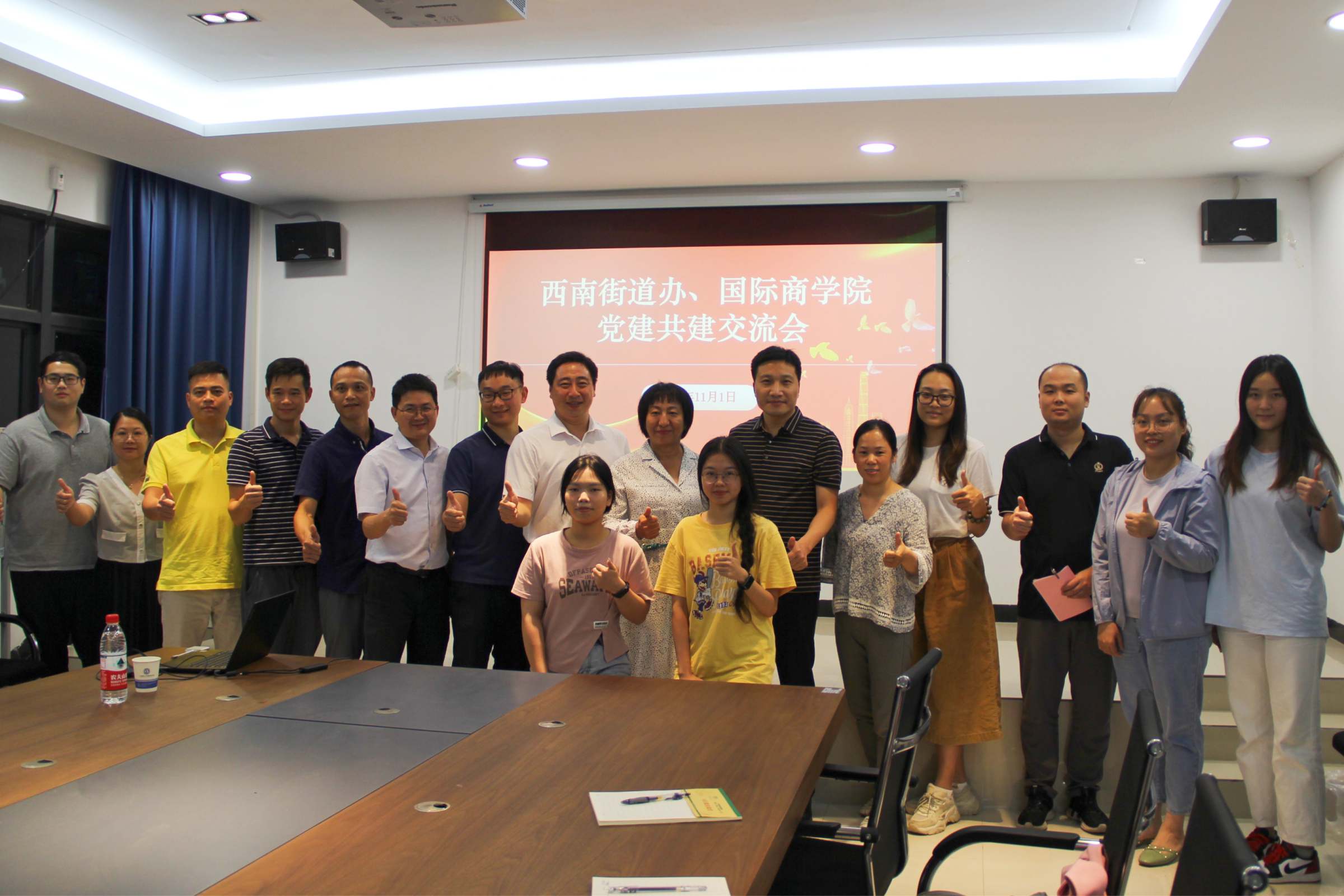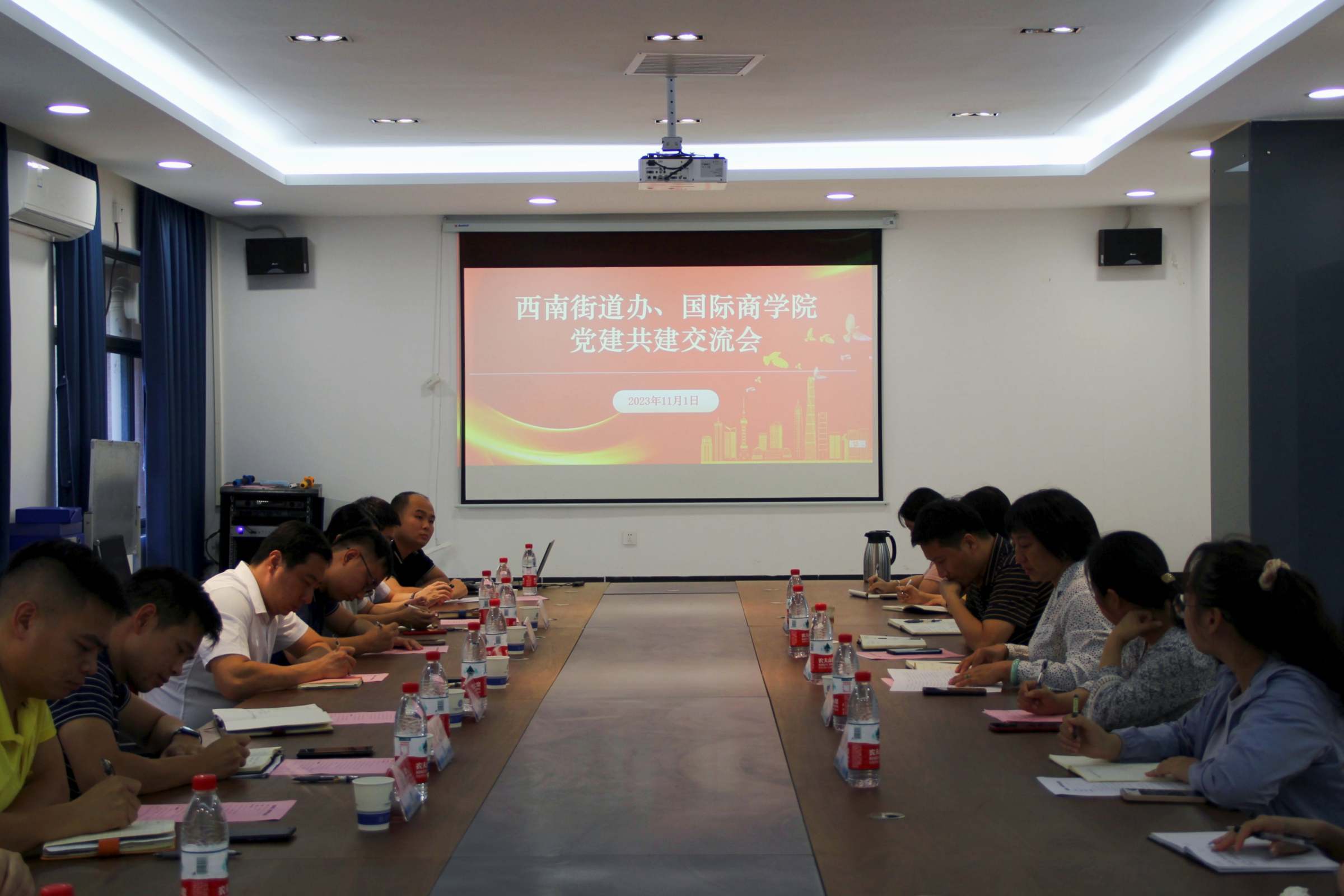 11月1日下午, 我校国际商学院佛山市三水区西南街道党建共建交流会于有为书院九栋会议室举行。西南街道办事处党工委副书记叶俊凯、三水区农业农村局农村建设管理股负责人吴志鹏、西南街道办事处党政办主任傅作林、农业农村办公室主任吴国棉及相关工作人员、国际商学院党委书记梁希琴、副书记郭显军、办公室主任肖华娟、辅导员罗娴明、陈迪及学院学生代表出席会议。会议由郭显军主持。