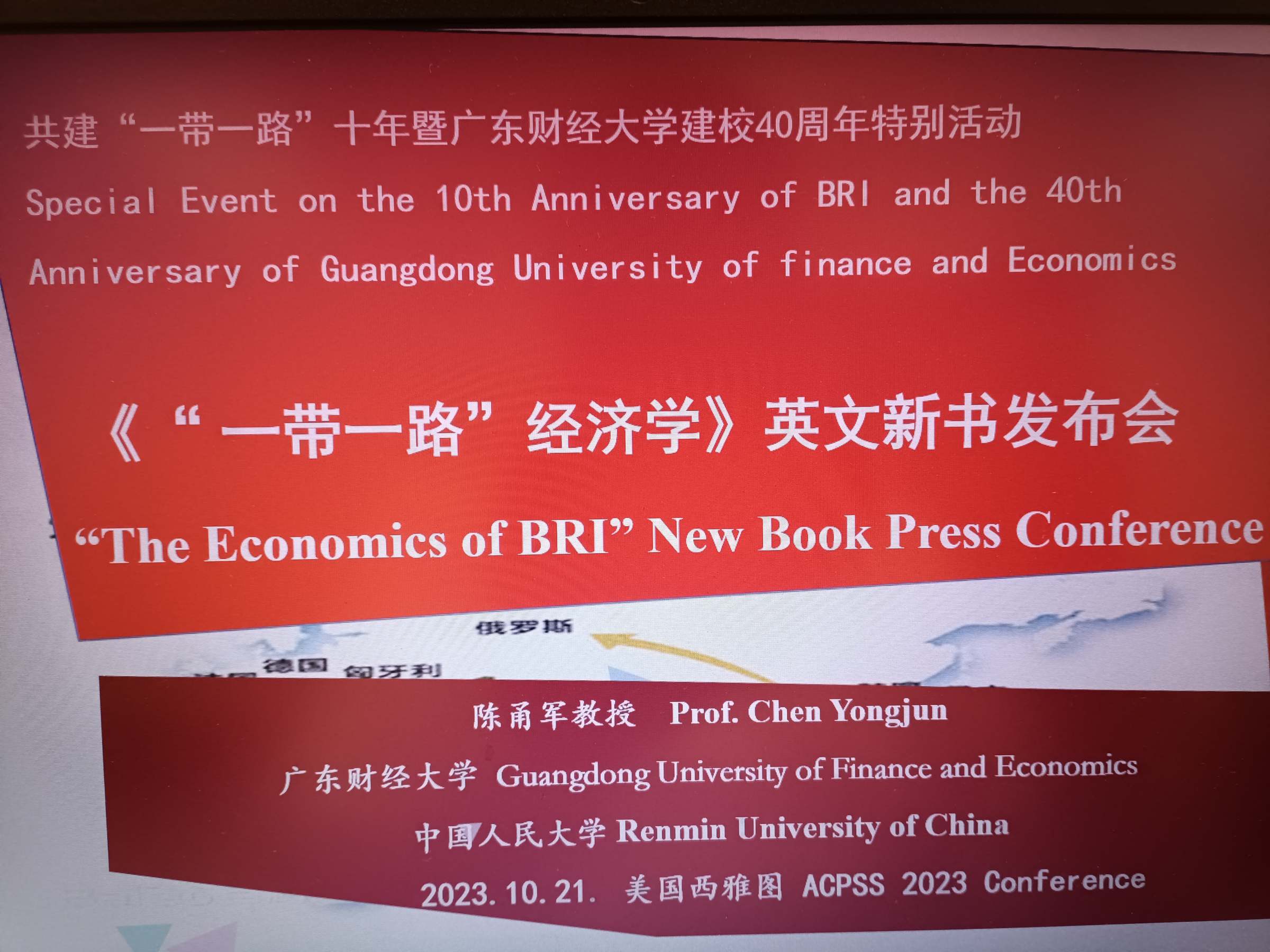 在“一带一路”倡议提出十周年之际,10月20-23日,美国华人人文社科教授学会第28届国际学术会议在华盛顿州太平洋路德大学举行。会上专门举行了陈甬军教授英文新书《“一带一路”经济学》的新书出版发布会。