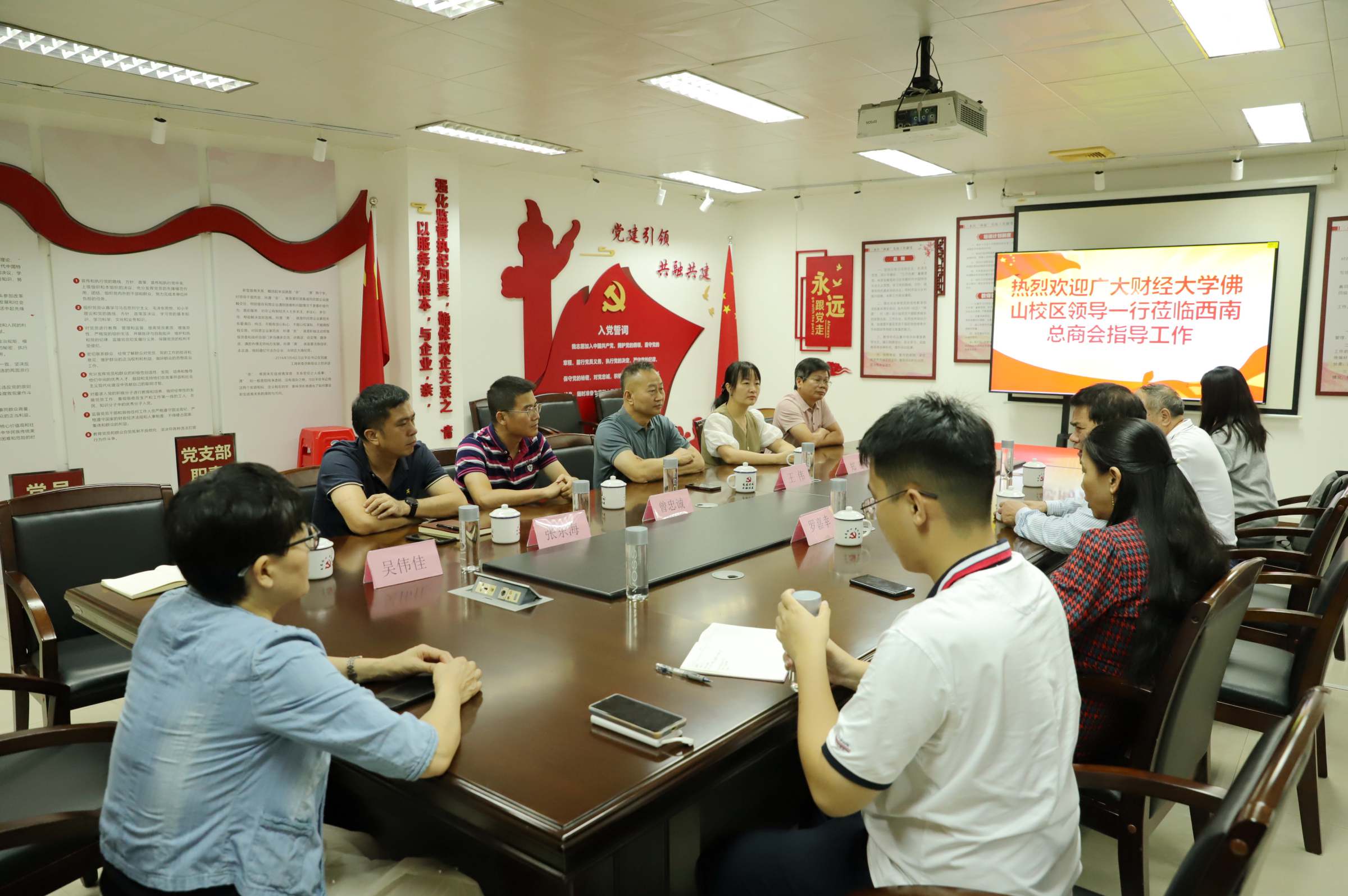 10月31日下午, 佛山校区党委书记、省市共建办主任王伟带队到三水区西南总商会走访交流。三水区西南总商会会长卢灿光、秘书长陈绍初、三水区工商联专职副主席罗嘉幸出席交流会。