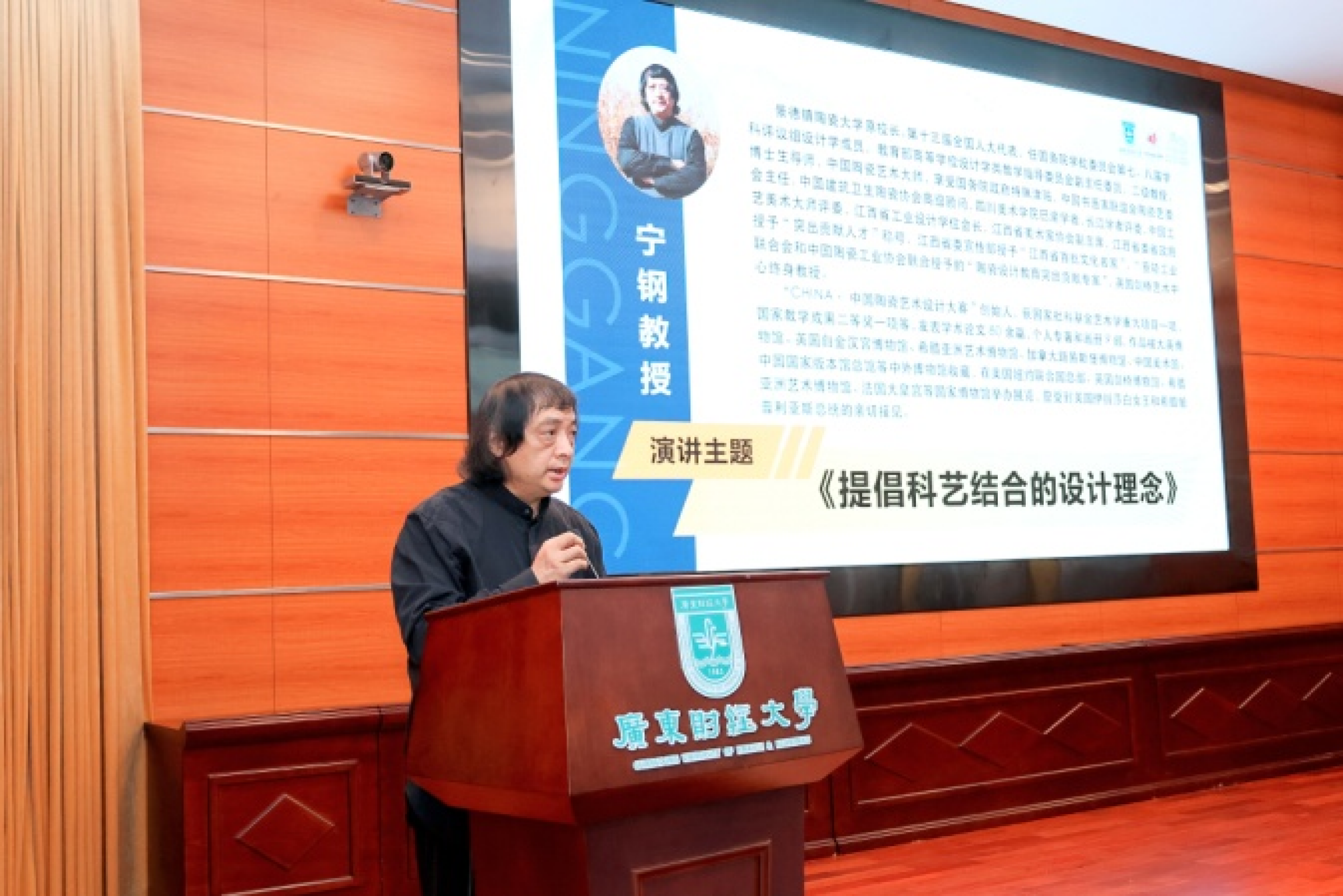 主旨发言环节,专家们围绕设计与国际化高校教育发展前沿问题进行分享。景德镇陶瓷大学原校长,澳门科技大学教授,中国陶瓷艺术大师宁钢教授分享《提倡科艺结合的设计理念》。他从国家战略层面分析了国际背景下的设计学科机遇和挑战,还讲述了国际设计热点对传统文化与现代设计的影响,设计学科、设计教育的未来发展趋势。