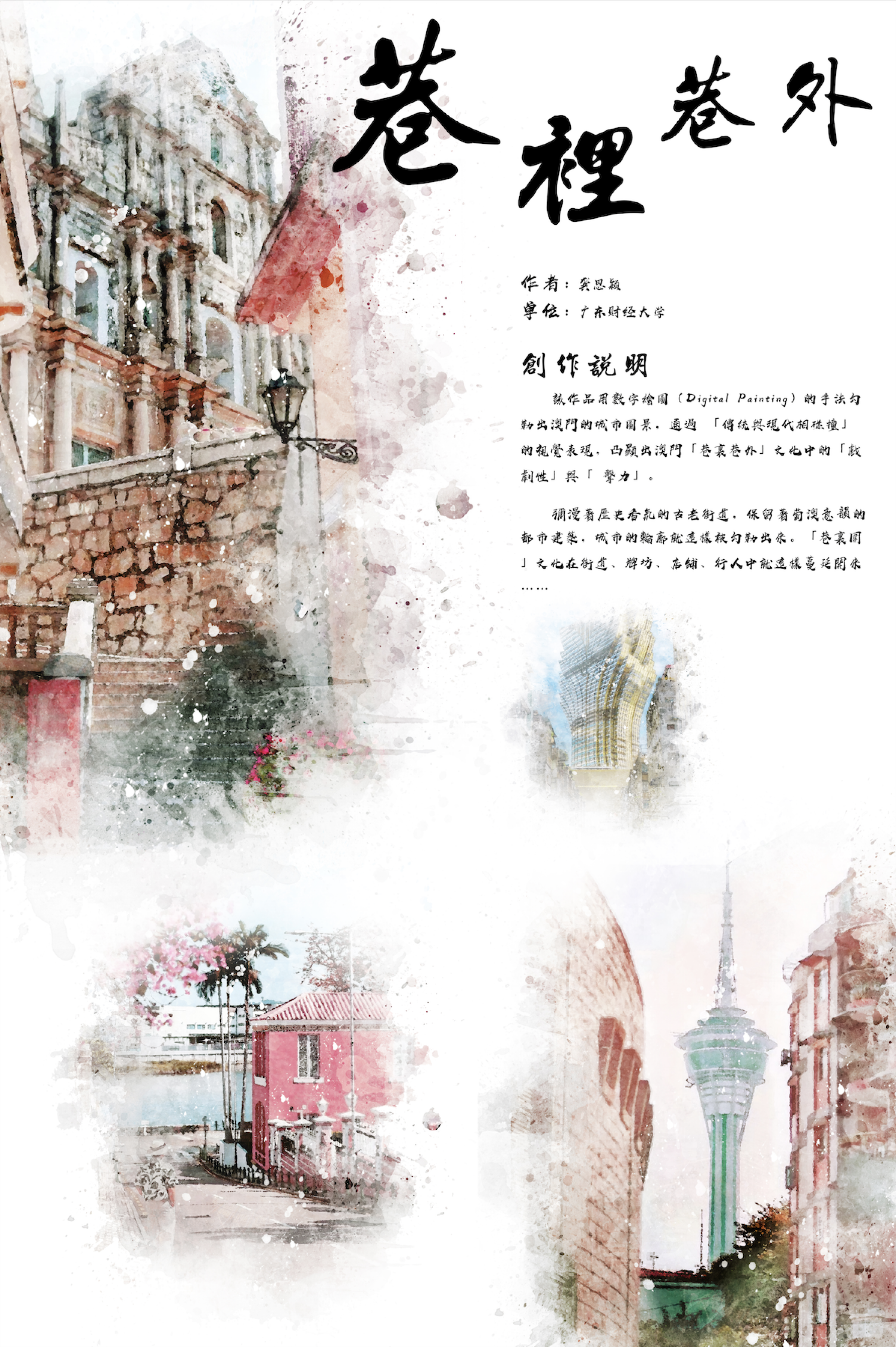 10月20日~11月18日,广东省教育厅主办的“第六届粤港澳大湾区学校设计作品展·第八届广东省高校设计作品学院奖双年展”在佛山弘汉艺术展馆举行。在此次展览中,我校湾区影视产业学院师生共有6件作品参展,包括龚思颖老师的作品《巷里箱外》,余子泓等同学的作品《新手狩猎指南》、蔡起迪等同学的作品《纪元重启》、王婧等同学的作品《遇见·瑶族》、王君茹等同学的组品《印象·妈祖》、陈晓雯等同学的组品《澳门·大三巴 香薰烛台》。