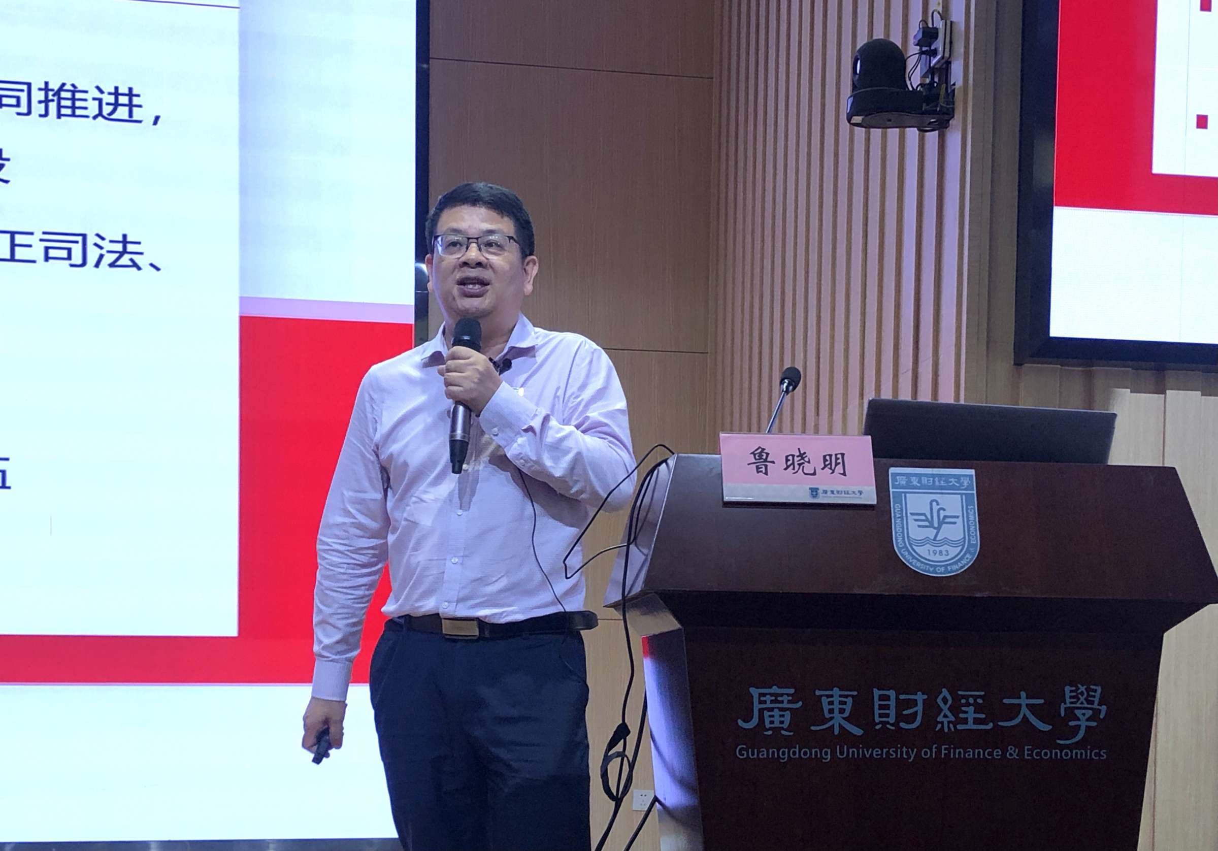 鲁晓明系统阐述了习近平法治思想的核心要义和实践要求,重点讲解了全面依法治国的重要意义、中国特色社会主义法治道路的核心要义和基本原则、中国特色社会主义法治体系的主要内容,以及加快推进法治中国建设的主要任务等重大问题。他的授课风格生动有趣,充分结合专业法学知识和生活中的实际案例来解释全面依法治国的重要性及其内涵,让同学更容易理解和和掌握全面依法治国的相关内容。