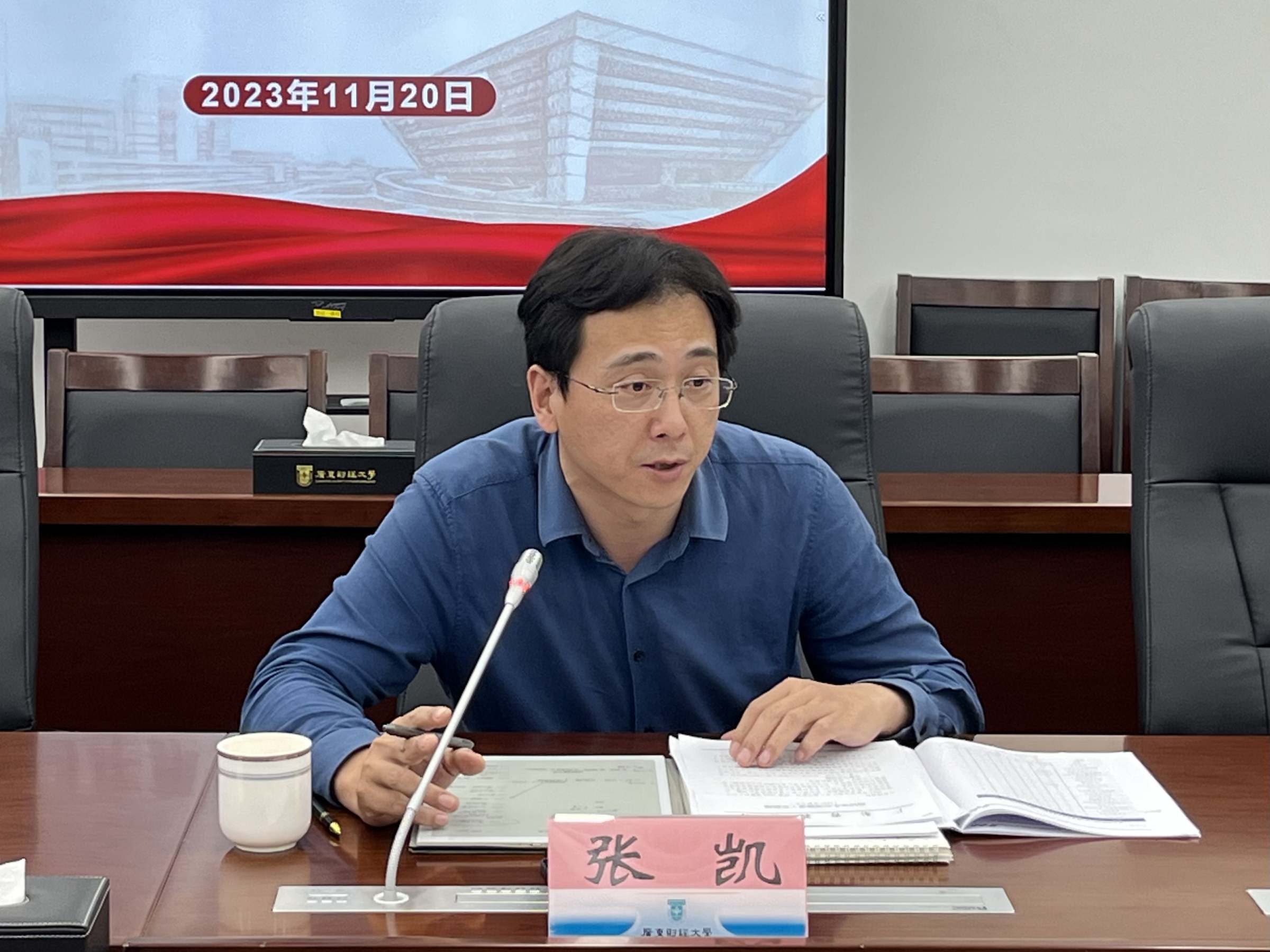 张凯就学生安全、文明校园、劳动教育、就业工作、港澳台学生管理等方面进行强调。他指出,一是高度重视学生安全工作,特别心理、消防等事关学生人身安全和政治意识形态安全、数据安全工作。二创新工作方法,打造一站式社区品牌特色。三是关注辅导员队伍建设,提升辅导员队伍专业化、职业化水平,关心辅导员身心健康。四是深入学生宿舍,了解学生思想动态,及时发现问题、解决问题。