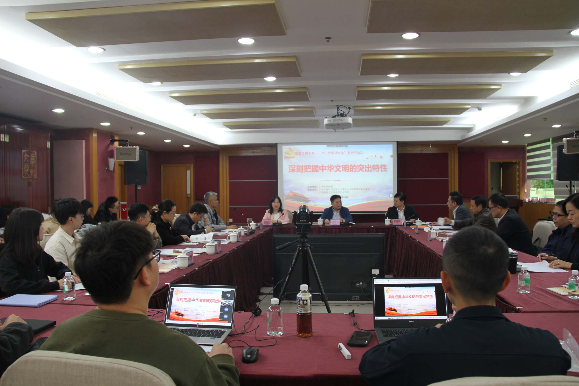 11月16日下午,由广州市社科联主办,广州市青年马克思主义理论人才培养研究重点基地、我校马克思主义学院承办的第72期广州学习沙龙在广州市社科联举行,研讨主题为“深刻把握中华文明的突出特性”。广州市社科联党组书记崔颂东、我校党委副书记罗贤甲出席会议并致辞,广州市社科联党组成员、专职副主席谭晓红出席会议。来自吉林大学、暨南大学、广东外语外贸大学、广东财经大学等高校的专家学者和研究生代表参加了研讨。会议由我校马克思主义学院党委书记张小洁主持。