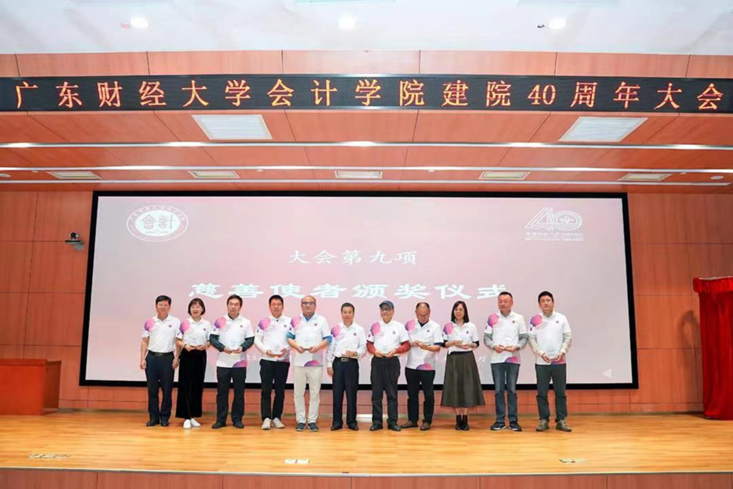 一直以来,会计学院校友们不遗余力地为母校的建设和发展出谋划策、慷慨支持和无私奉献,捐赠学校正心堂、同心花园、学院学术报告厅等,以班级为单位捐款捐树,以单位或个人名义捐资捐物捐书捐画等等,每一样都饱含了会计学院校友们的真情厚意!为感谢校友们所作出的贡献,罗贤甲为校友代表颁发了“慈善使者”荣誉奖牌。