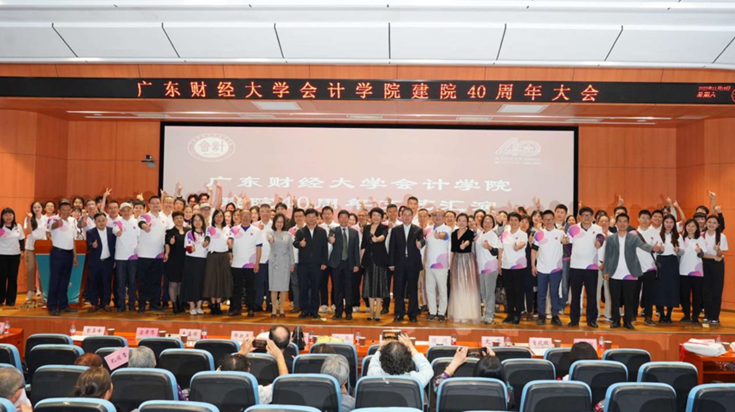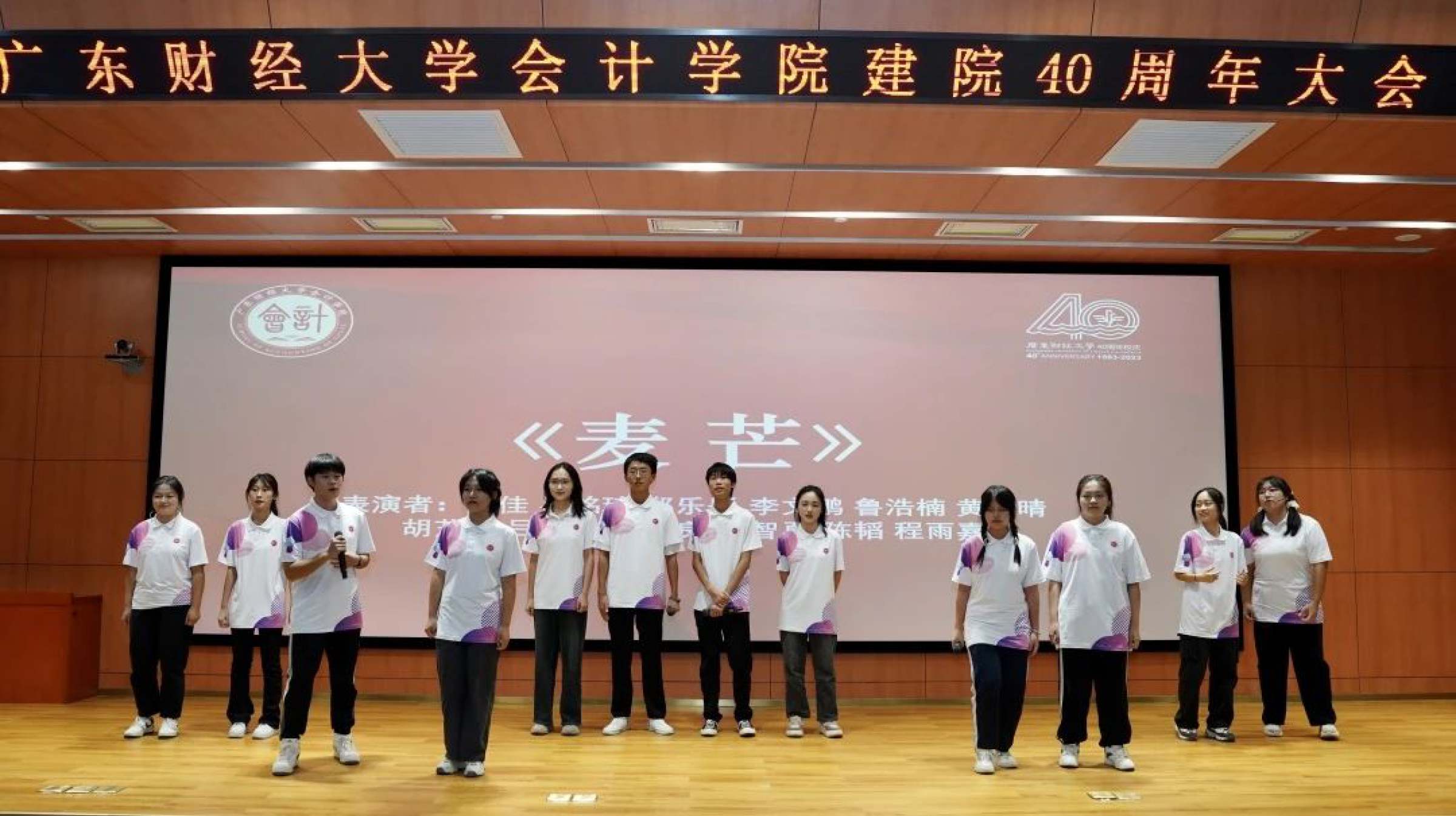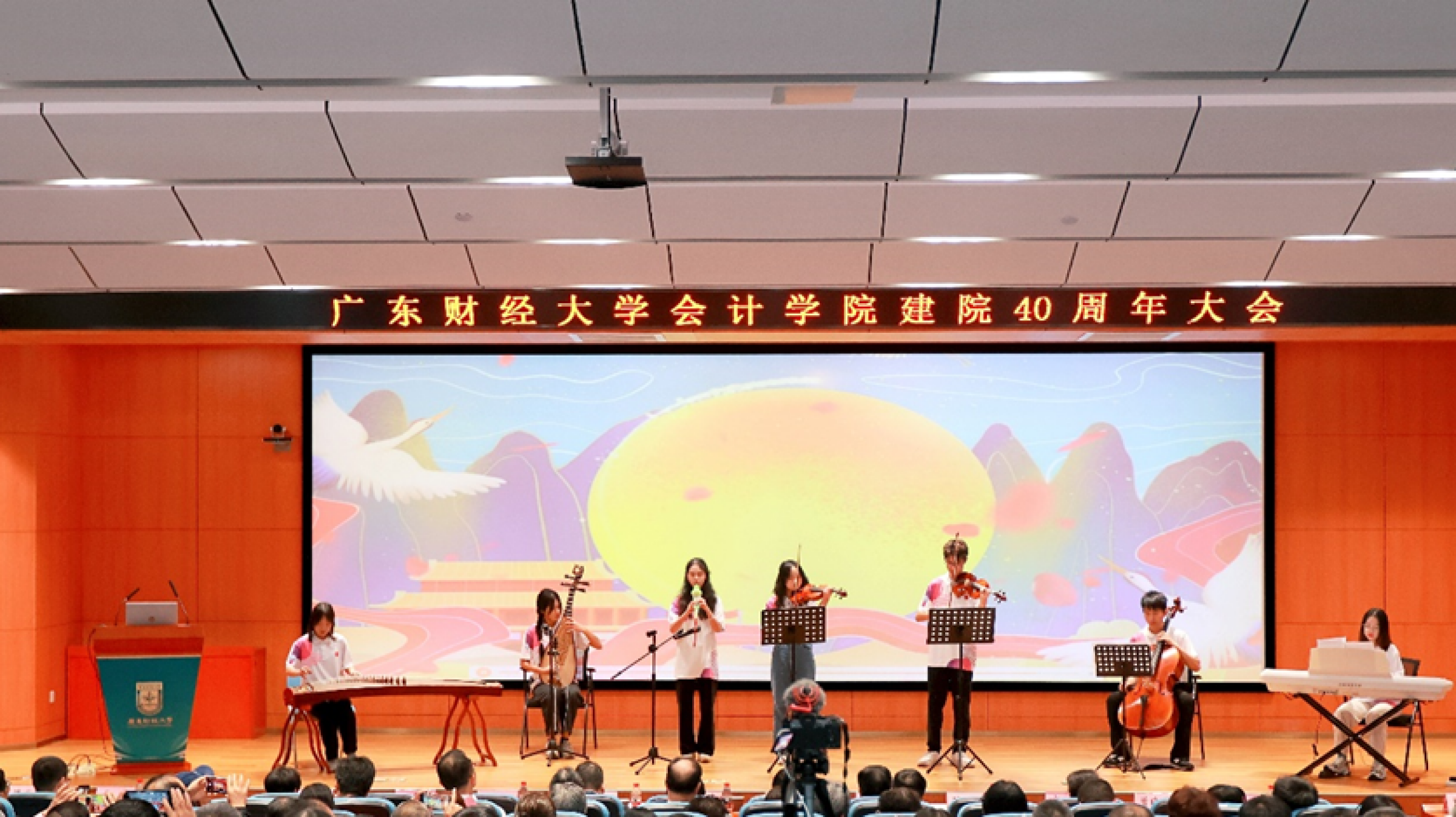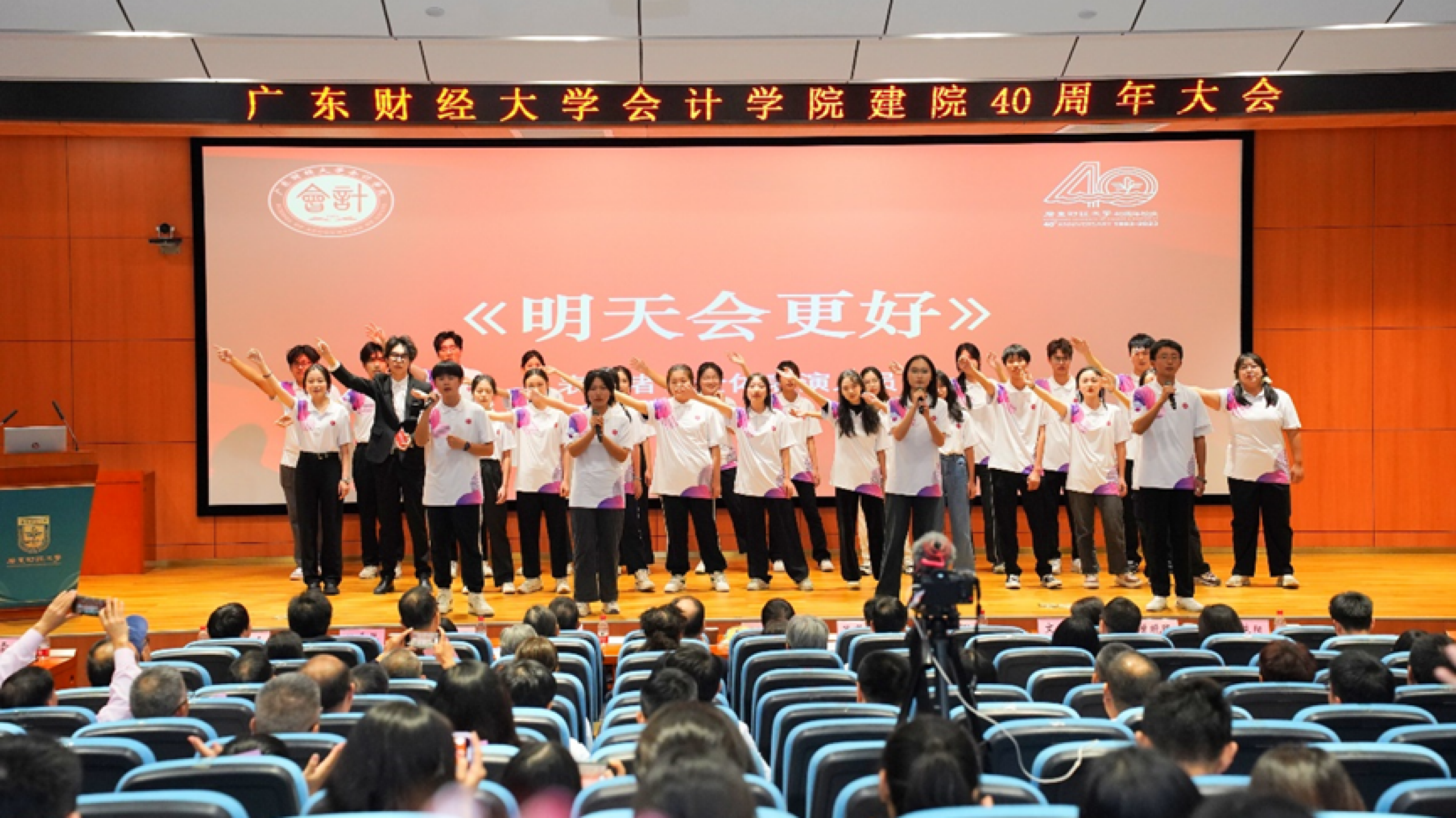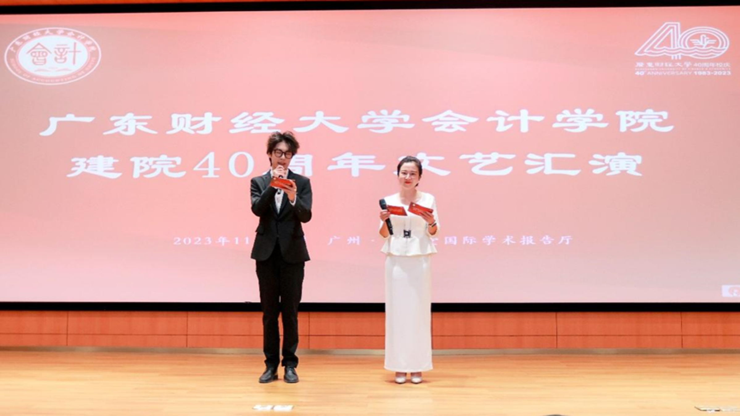 下午4点30分, 会计学院建院40周年文艺汇演在正心堂举行。同学们和校友们精心准备的节目引人入胜,现场观众纷纷献出热烈的掌声,精彩纷呈的表演为本次学院庆典画上了完美的句号。