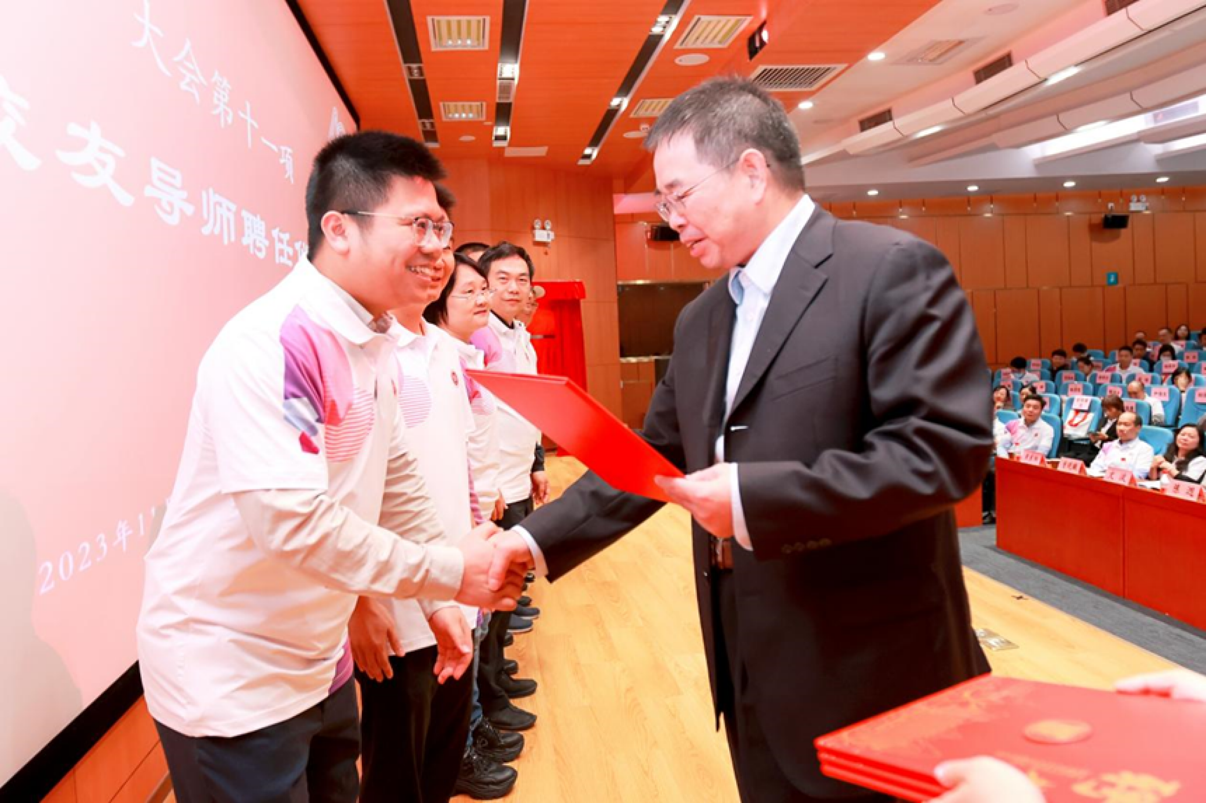 邹新月为会计学院校友导师颁发聘书,希望他们用自身的经验、资源为在校学生指引方向,为学院发展添砖加瓦。