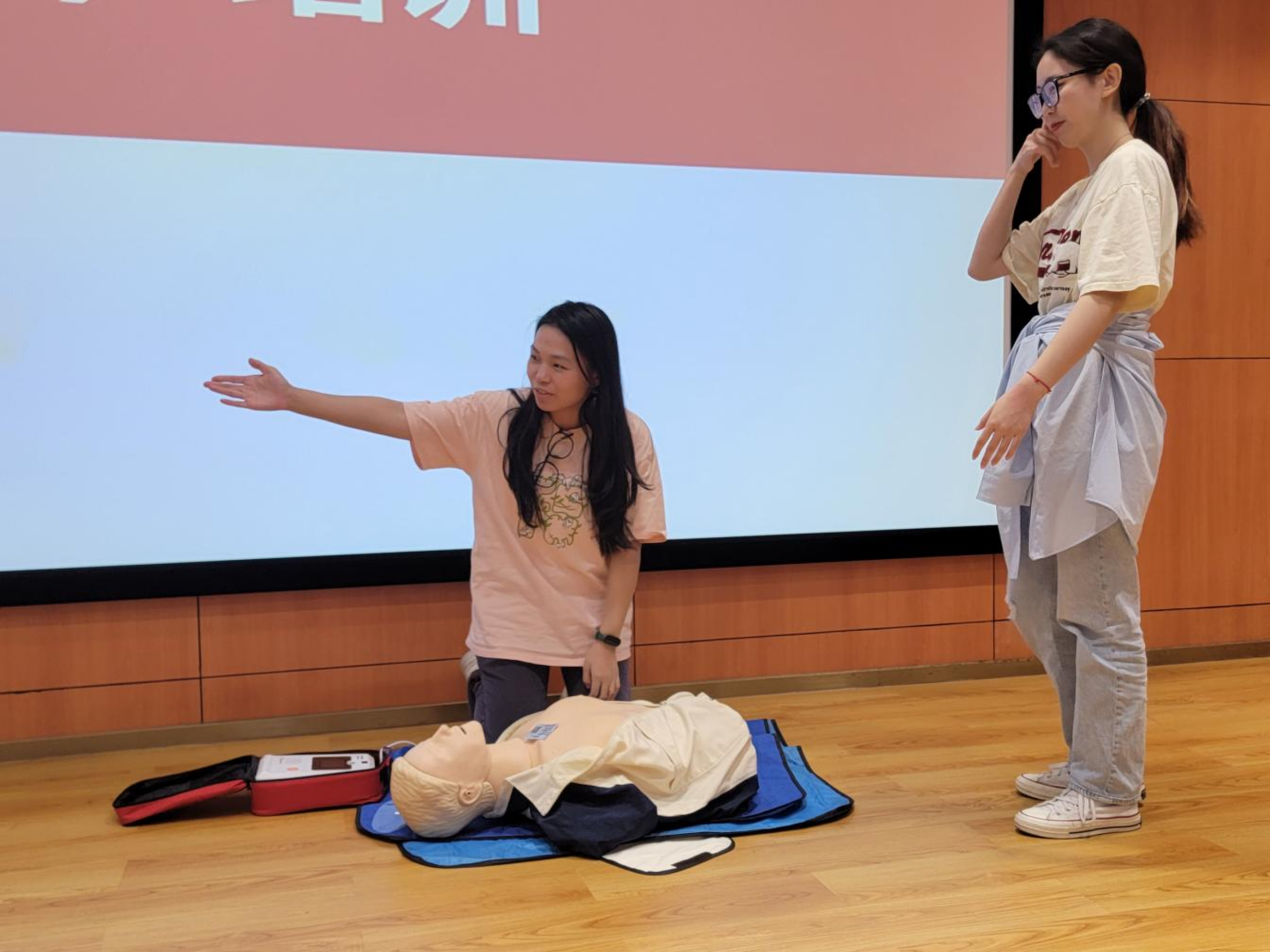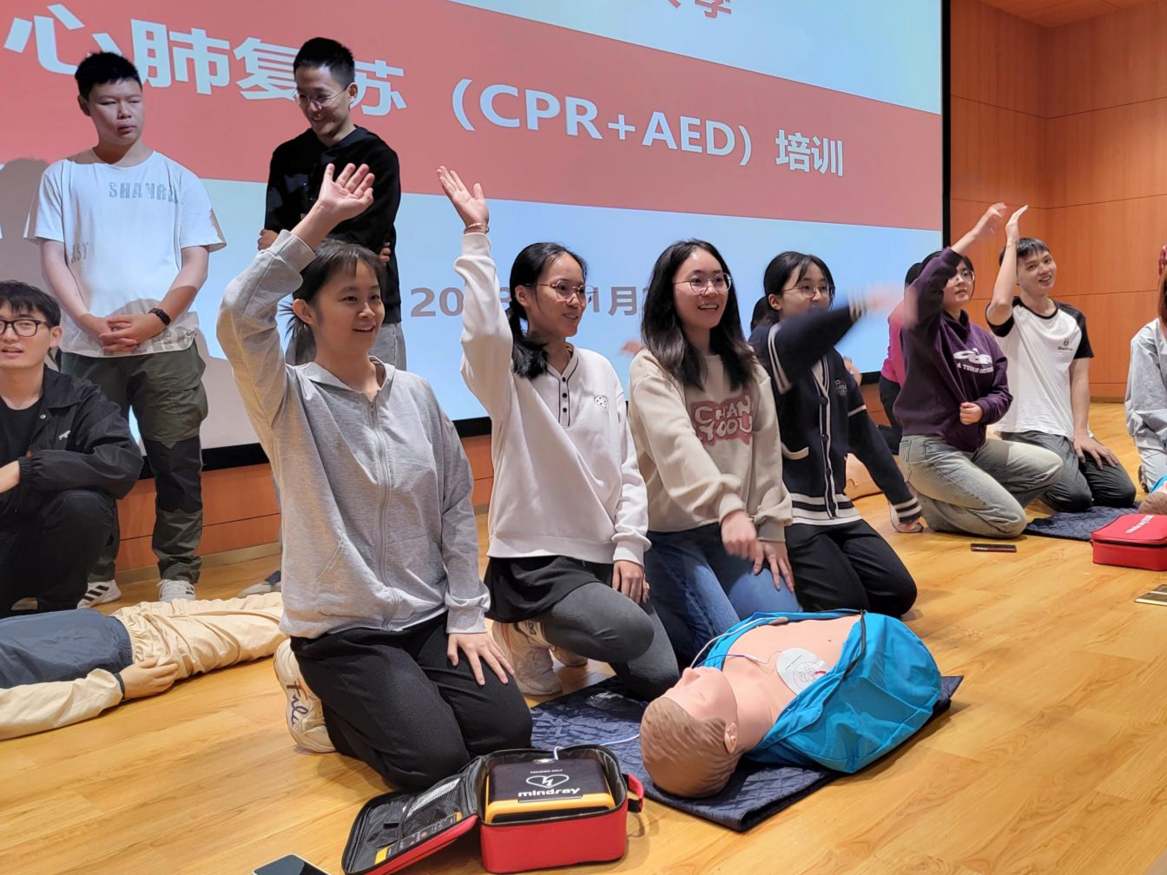 本轮急救培训内容主要包括:紧急救护概念、心肺复苏术、自动心脏除颤仪(AED)操作使用等。培训结合了急救理论学习与实际救护操作,首先为师生讲授了急救理论,然后进行了实际操作训练。通过培训,师生基本了解并掌握了心肺复苏术、AED使用操作技能等。