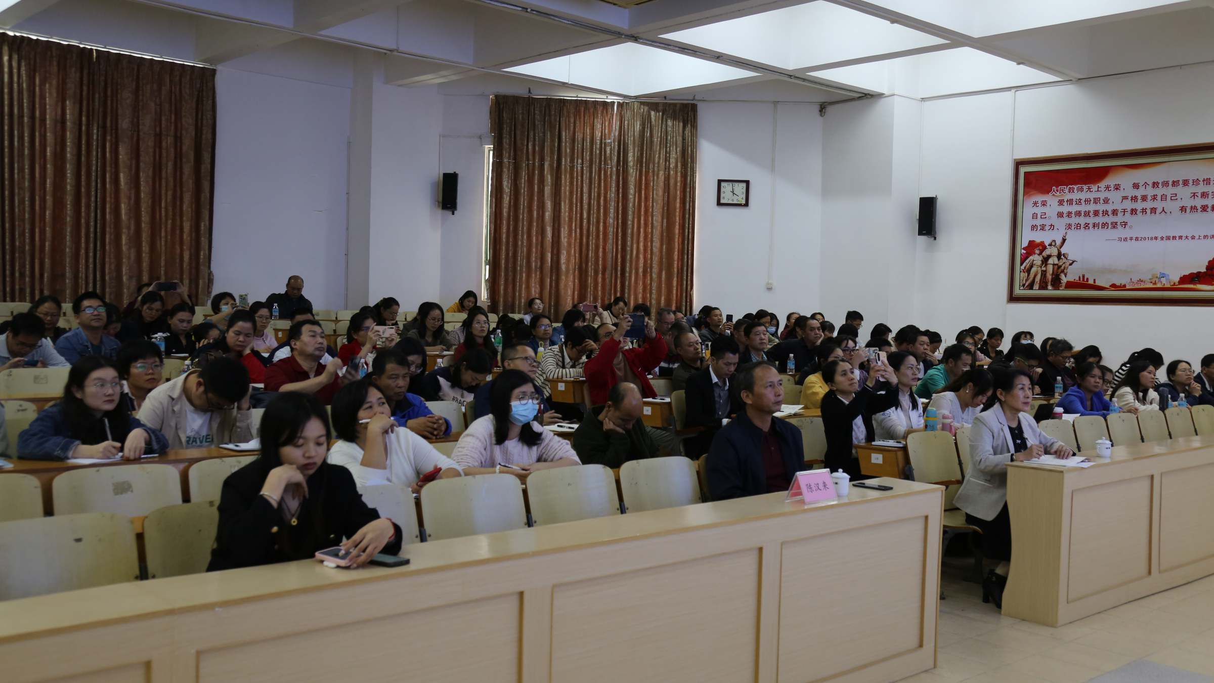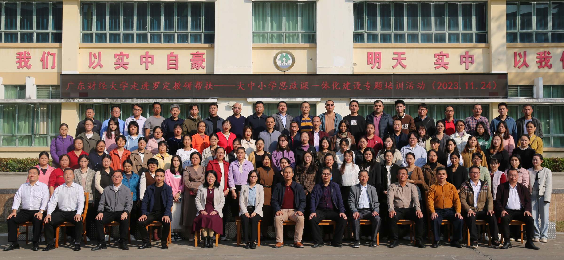 11月23日-24日,由罗定市教育局组织开展的主题为“大中小学思政课一体化建设”专项培训在罗定市实验中学顺利开展。本次培训由我校马克思主义学院邓先珍副教授主讲,全市中小学200多名思政课教师参加。根据教师实际需要,本次培训开设了“课题申报和学术论文撰写”、“大思政一体化教学逻辑与思维的应用”等专题,得到了罗定市教育局和参训教师的一致好评。