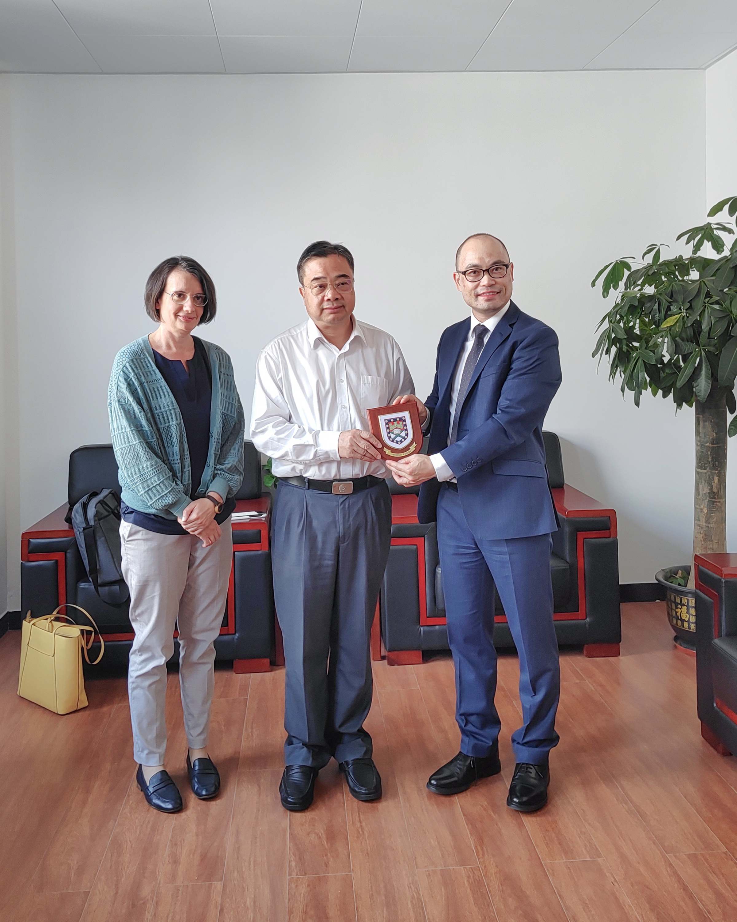 郑贤操对Bill Peng和Rachel Jones 的到访表示热烈欢迎,向来访客人介绍了学校的基本情况以及40年来的发展史和取得的成就,双方就学校情况进行深入交流,会谈结束后郑贤操代表我校赠送来访客人学校40周年纪念品,同时埃克塞特大学访问团也向我校赠送其校徽,表达对两校长期深度合作的美好愿景。