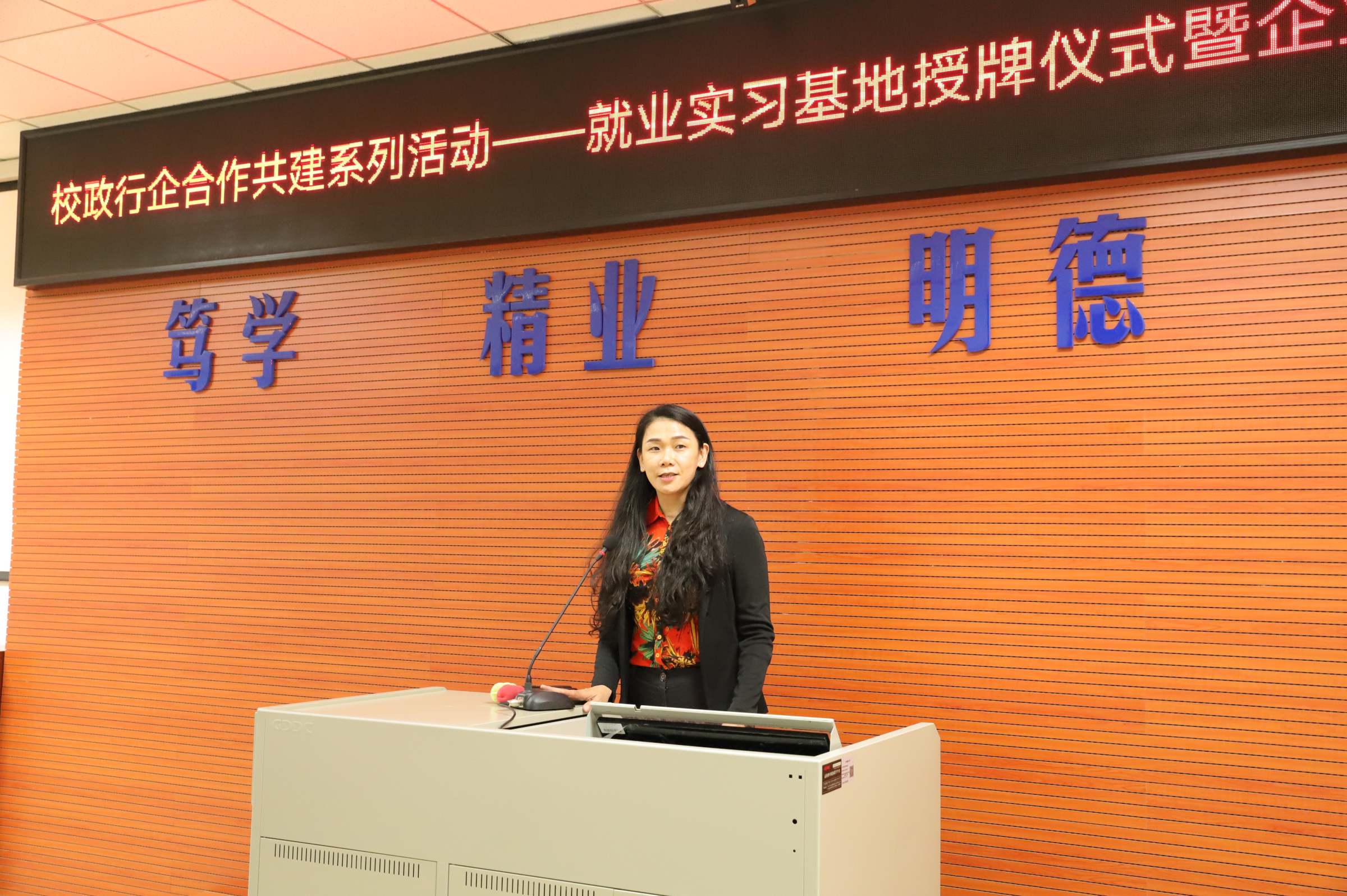 授牌仪式上,黄庆安为广东合和建筑五金集团颁授“广东财经大学大学生就业实习基地”牌匾,谢晓东代表集团接受牌匾。