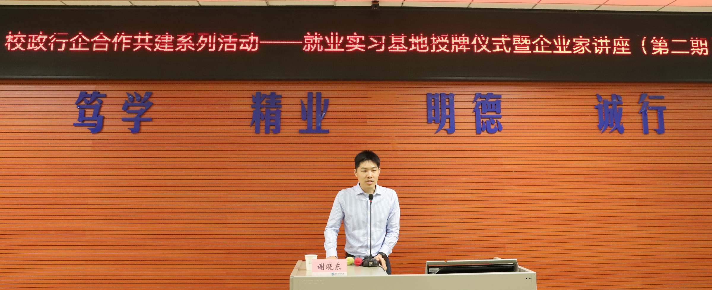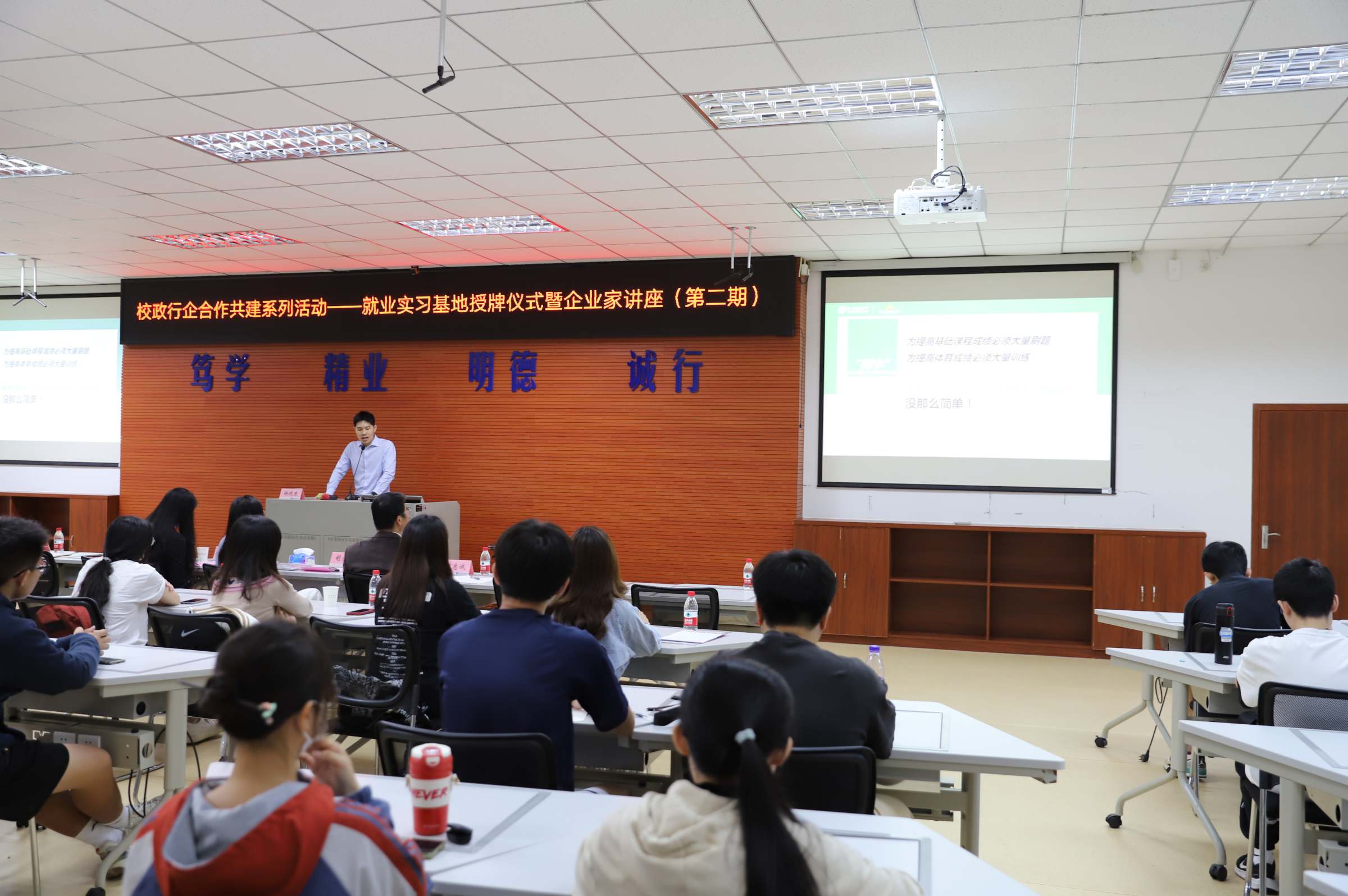 授牌仪式后,谢晓东作“立志笃行、深耕细研——纵谈个人成长与企业经营”专题讲座,他结合自己求学和工作经历为同学们谈人生规划,现场气氛活跃,同学们纷纷参与互动。
