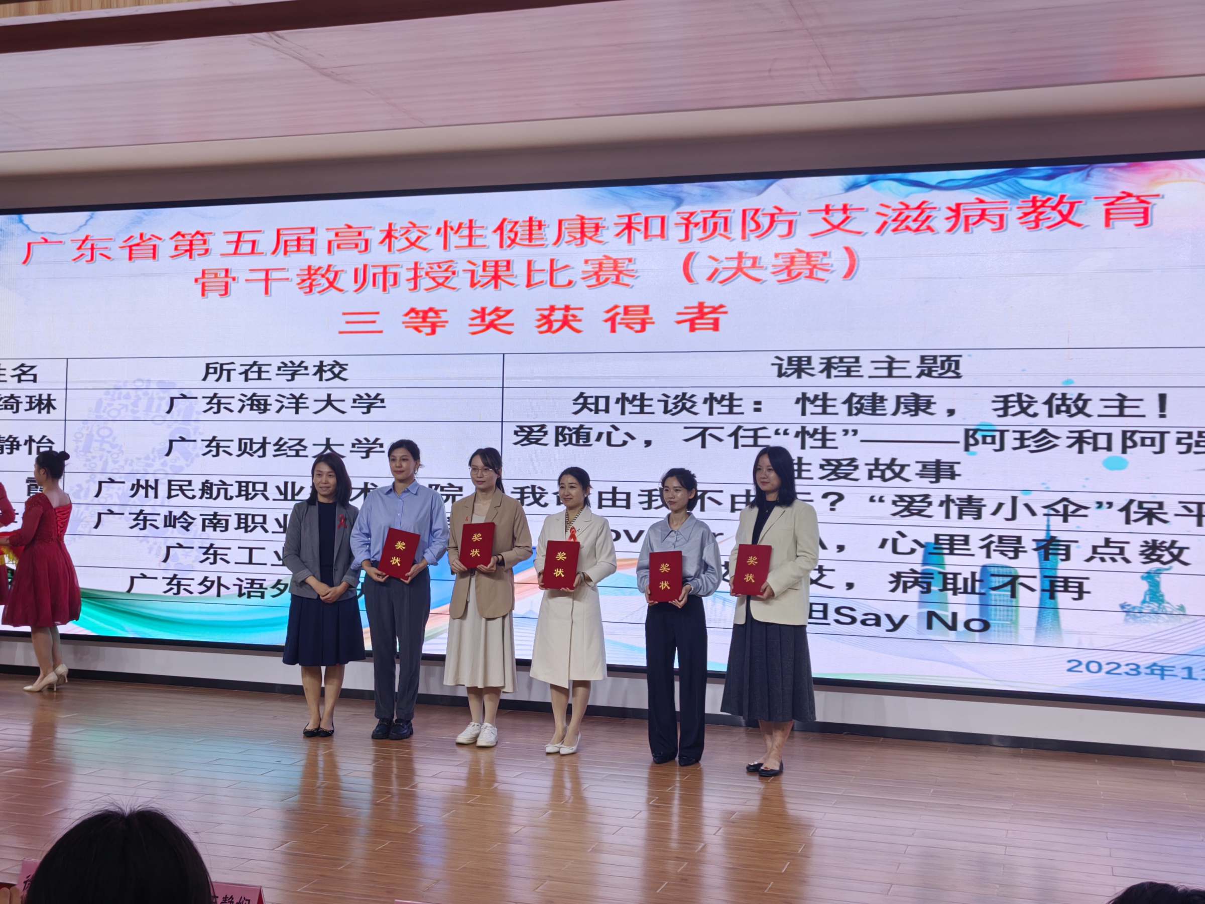 11月30日上午,由广东省教育厅主办的“第五届高校性健康和预防艾滋病教育骨干教师授课比赛”决赛拉开帷幕,我校门诊部心理咨询中心专职老师何静怡从初赛、复赛中突围,与来自其它高校的9位老师进入决赛,并最终获得三等奖。门诊部、团委、校红十字会组织有关师生现场观摩。