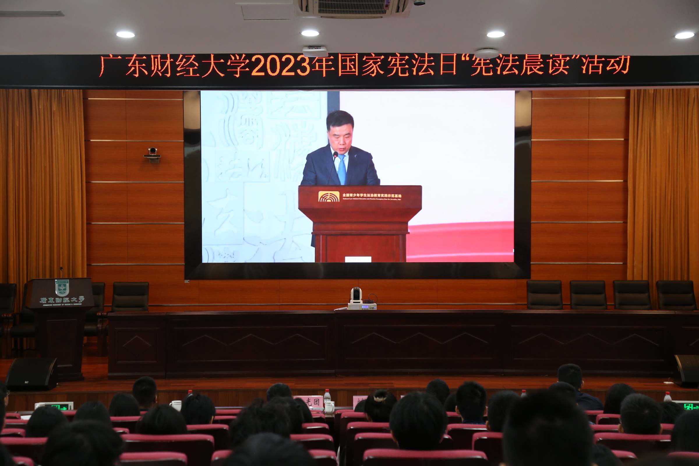 按照教育部、省教育工委的有关工作安排,12月4日上午,学校在广州校区勤学楼408设立会场,通过网络连接主会场同步参与全国教育系统“宪法晨读”活动。校党委副书记刘祖华,宣传部、法制办相关人员,法学院师生代表100余人参加活动。