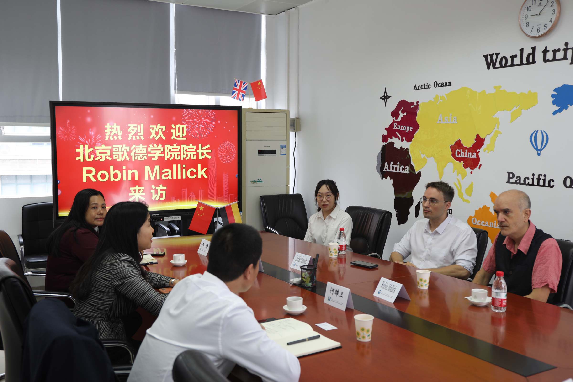 11月30日上午,北京歌德学院院长Robin Mallick到我校国际学院开展调研交流。国际学院院长、歌德语言中心中方主任庞革英,直属党支部书记何雄卫,副院长韦娟,歌德语言中心德方主任Steffen Hanisch共同参与交流会,会议由何雄卫主持。