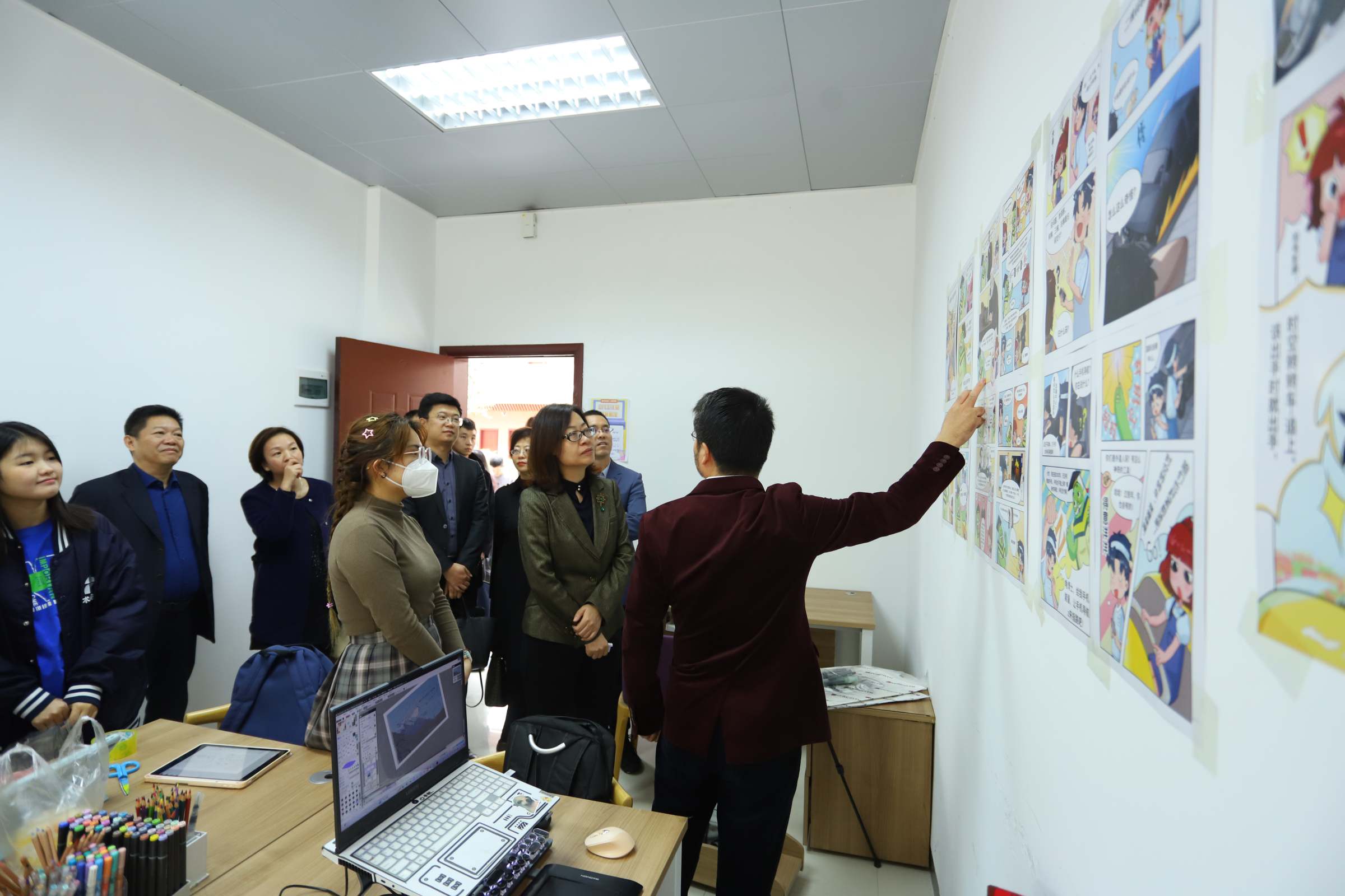 随后,刘颖一行来到我校佛山校区“影视化社区”有为书院22栋实地调研,参观“数字人”工作室、绘本工作室以及书院文化交流中心,了解社区的环境布局、功能室使用情况和社区建设亮点特色。走访过程中,领导老师和同学们积极亲切交流,鼓励同学们要用好一站式社区,保持身心健康,实现全面发展。