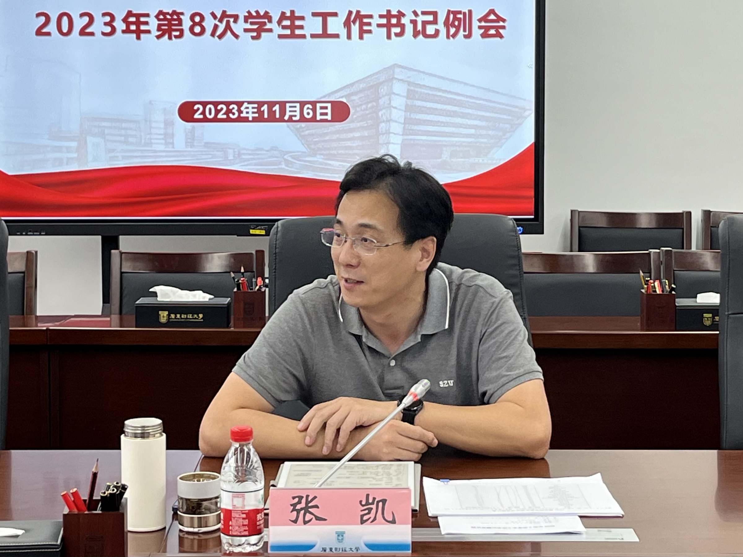 张凯对学工队伍近期的努力表示肯定,并对就业、数字化转型和近期相关学生工作进行强调部署。他指出,一是推进学院书记院长积极开展访企拓岗促就业工作,大力拓展校内外资源促进学生就业。二是培养数字化思维,强化精细化管理服务。三是勇于创新,做出“一站式”社区的特色亮点。四是发挥榜样引领作用,提高学生荣誉感和自豪感。五是学工队伍要下沉一线,把问题矛盾化解在社区和基层。