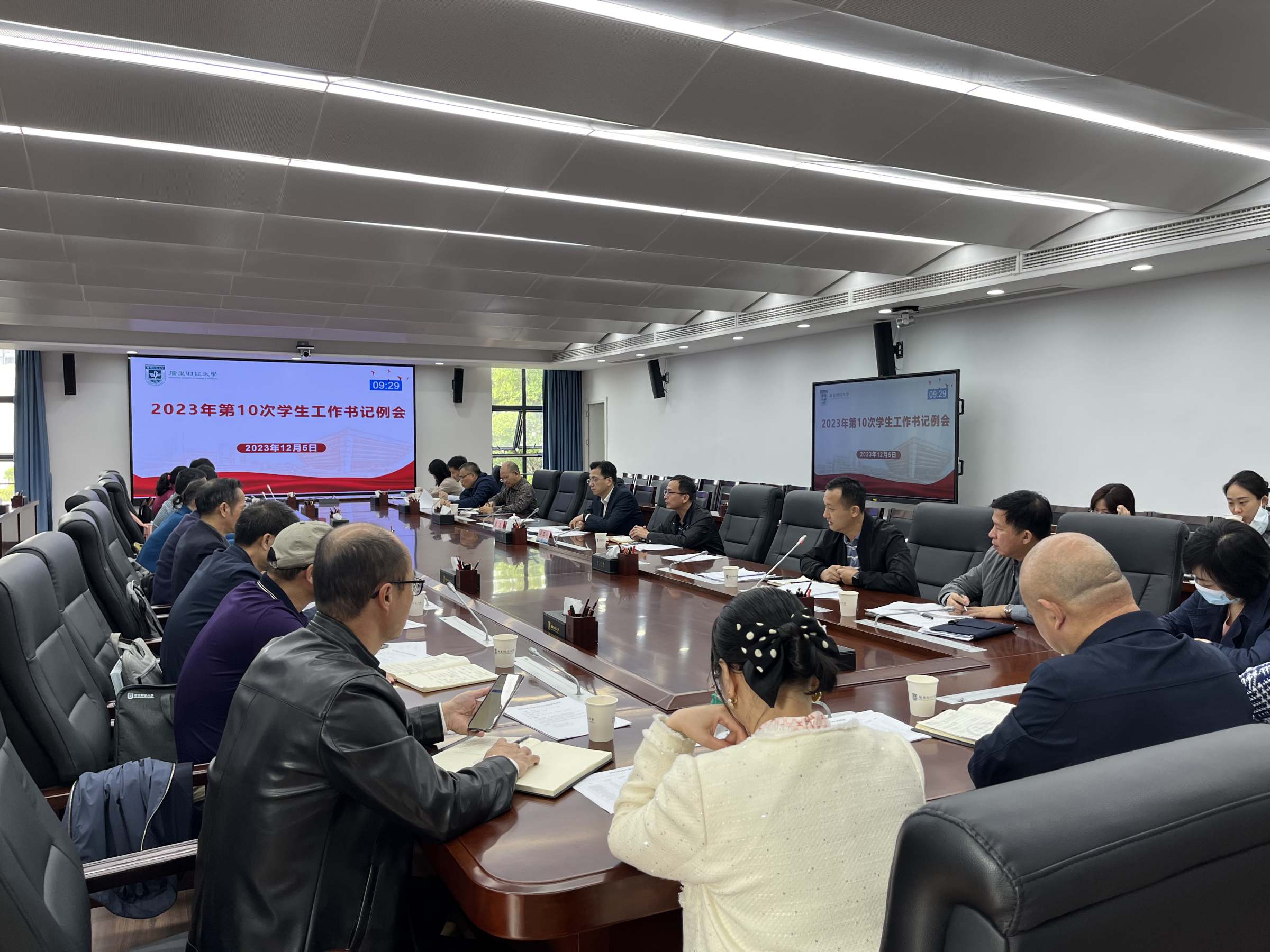 12月5日上午,我校2023年第10次学生工作书记例会在同德楼第一会议室召开,本次会议聚焦学生就业工作,学工部负责人及各学院学生工作书记与会,会议由副校长张凯主持。