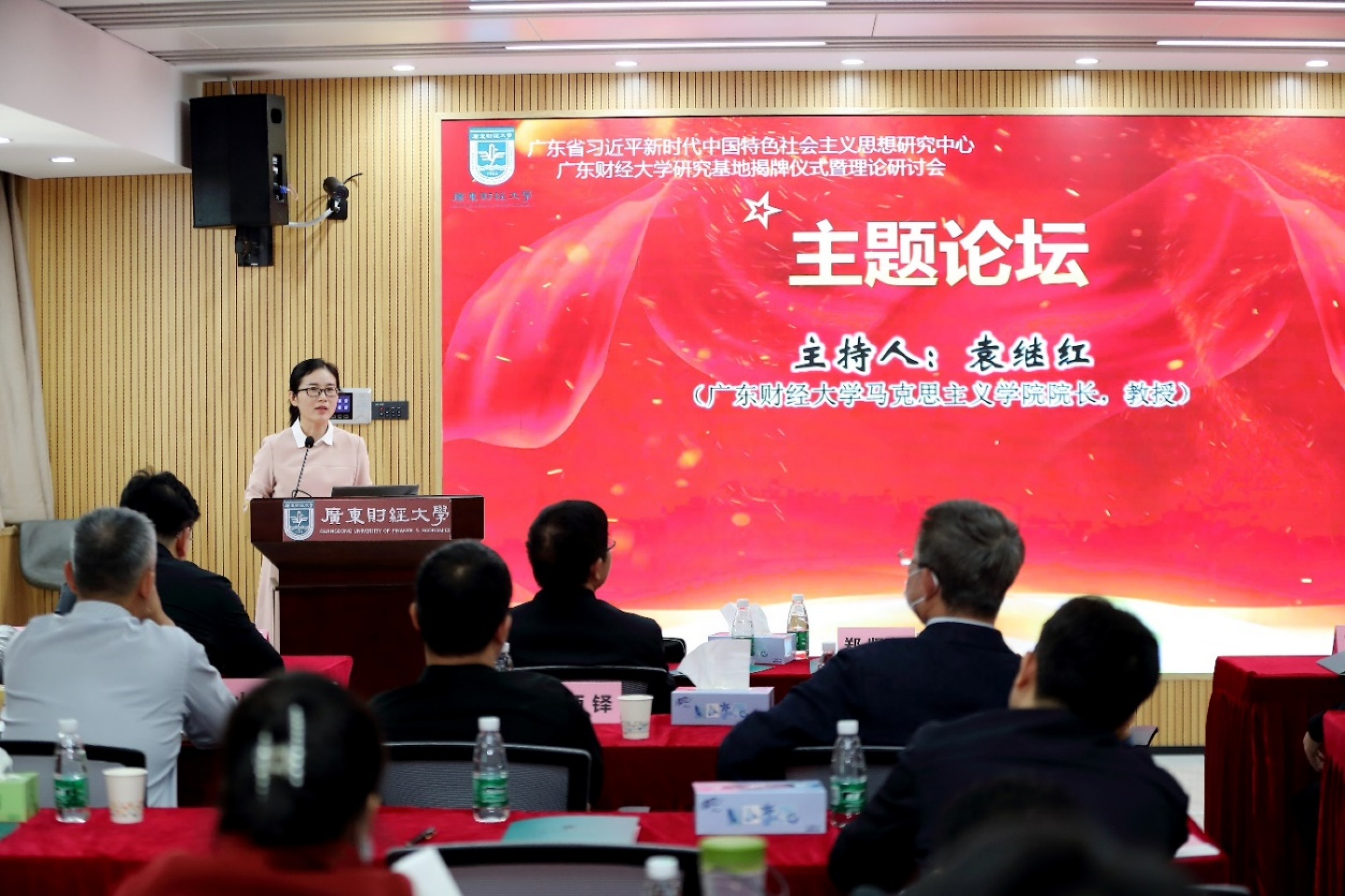 随后,与会嘉宾共同为“广东省习近平新时代中国特色社会主义思想研究中心广东财经大学研究基地”揭牌。