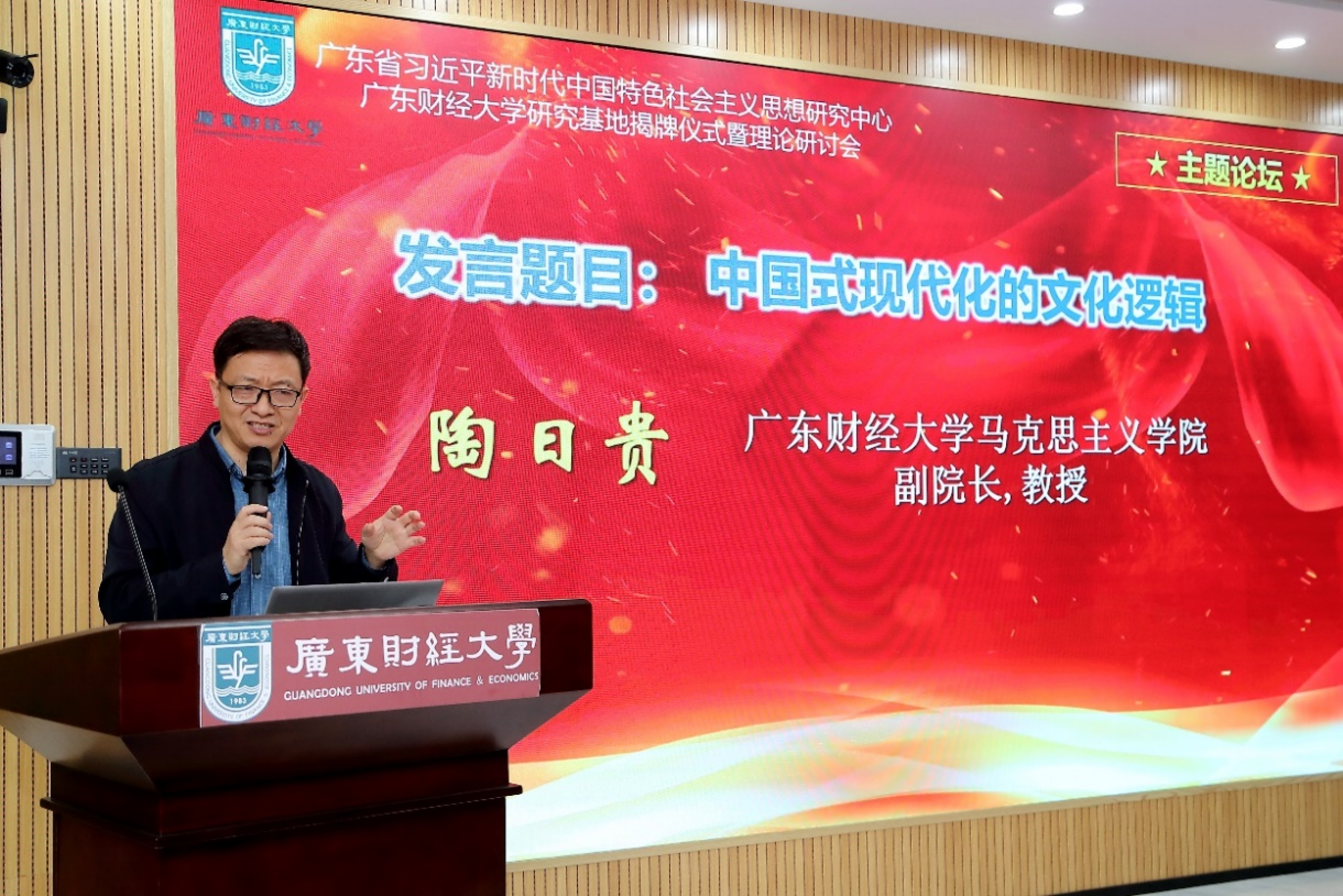 理论研讨环节由袁继红主持。张国祚,丁晋清,蔡文成,周峰,白国强和广东财经大学马克思主义学院副院长陶日贵,分别围绕“学习贯彻习近平文化思想”“以中国式现代化推动构建人类命运共同体”等主题先后发表主旨演讲。