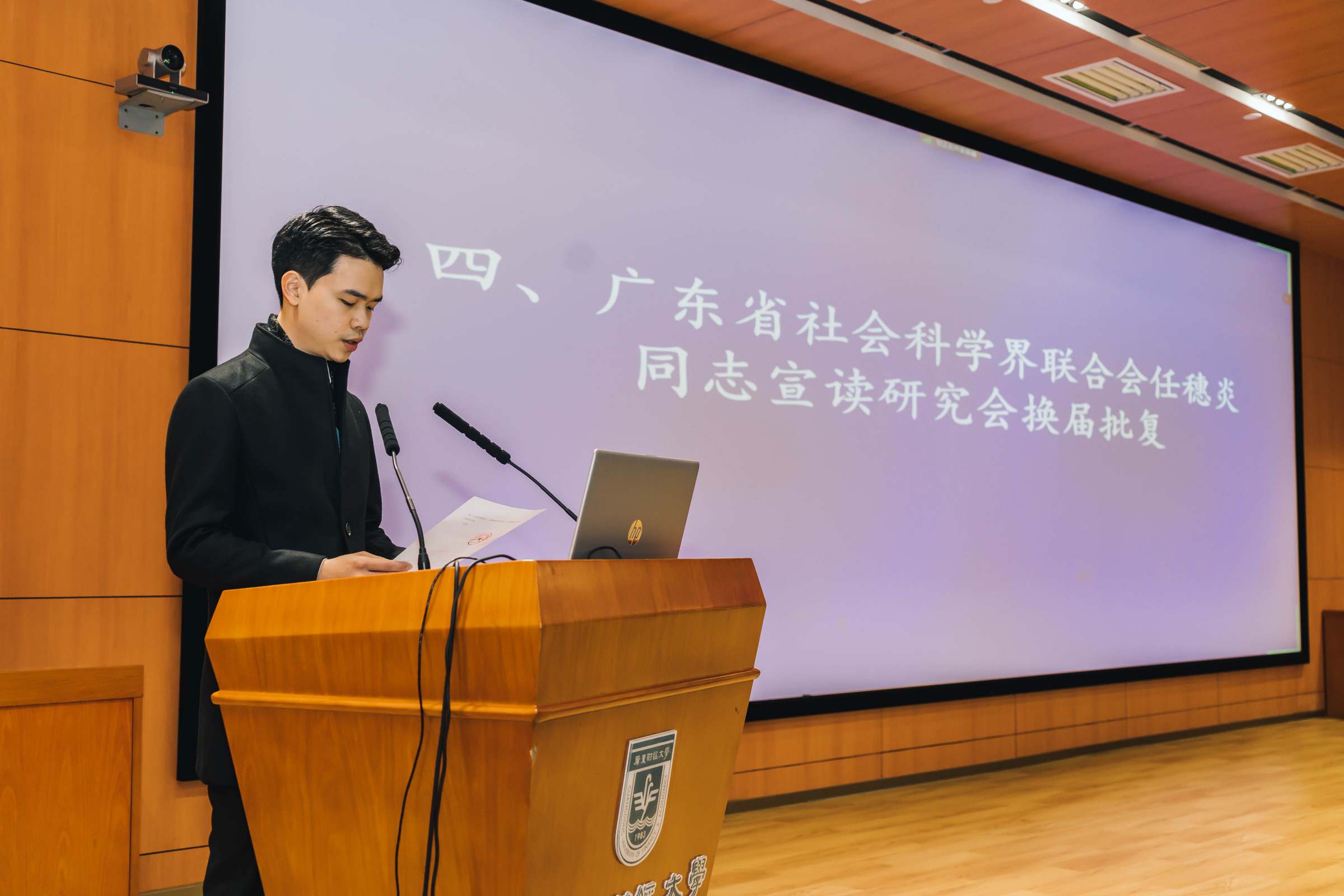 12月10日,广东省社会责任研究会(以下简称“研究会”)第四届第一次会员代表大会暨第九届中国•南方企业社会责任论坛在我校隆重召开。校长于海峰,广东省国际贸易促进委员会副会长邱招贤,广发证券股份有限公司培训中心总经理刘正周,我校社会合作处处长黎友焕,广东省社会科学界联合会社团联络部任穗炎,以及来自中山大学、华南理工大学、我校、广东外语外贸大学等领导、嘉宾、学者以及会员代表出席了会议。
