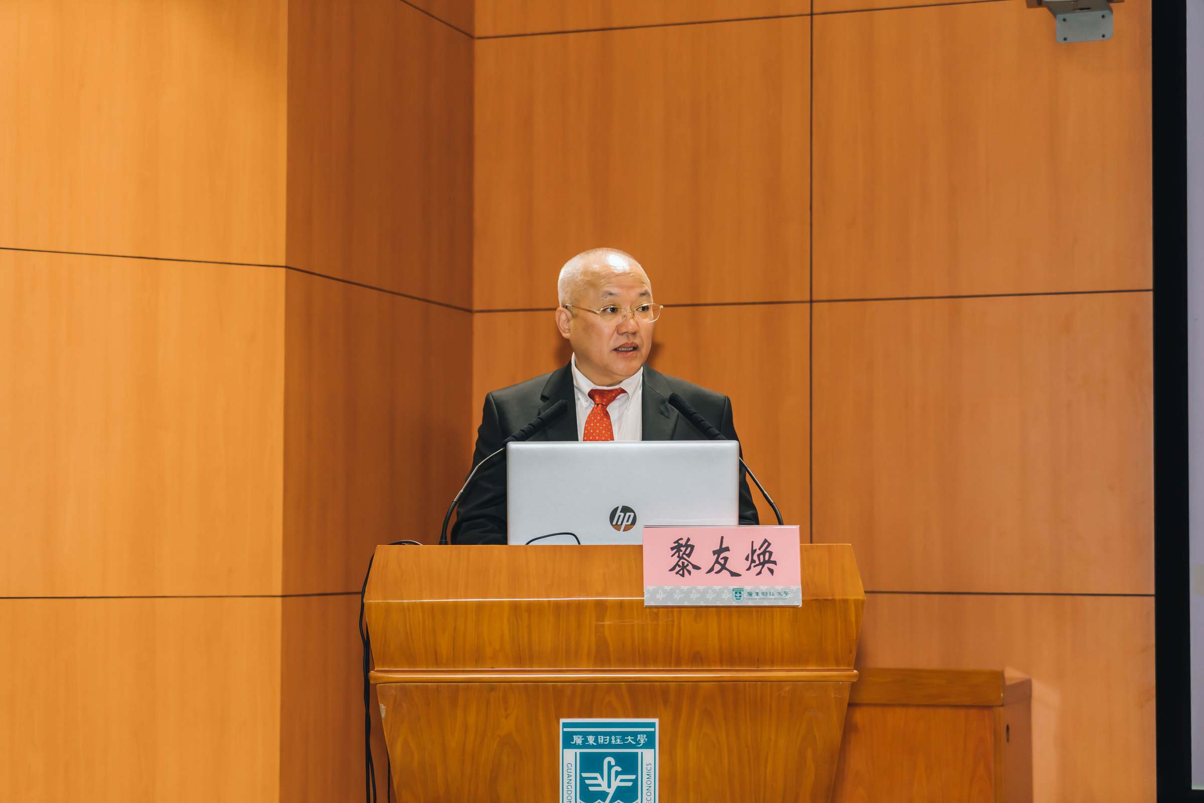 于海峰致辞,他首先对莅临会议的学者和嘉宾表示了欢迎和敬意。他表示,研究会成立以来,产出了大量的研究成果,在社会上产生了广泛而深刻的影响。未来,广东财经大学将继续发挥自身优势,加强科研成果转化,加强与社会各界联络,共同探索社会责任的理论和实践创新,为构建更加和谐的社会贡献广财大智慧。